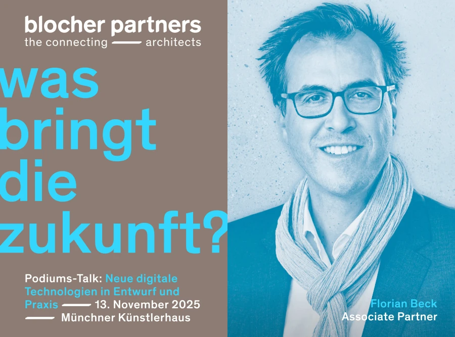 At the panel discussion “New Digital Technologies in Design and Practice” on 13 November 2025 at Münchner Künstlerhaus, Florian Beck, Associate Partner at blocher partners, will show how BIM, parametric design and immersive visualization are transforming planning and construction processes. Using recent projects, he will discuss how digital tools increase efficiency and transparency – and how they open up new opportunities for sustainable, user-centred architecture.