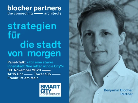 At the Smart City Conference in Frankfurt, curated by the dfv Mediengruppe and renowned experts, everything revolves around strategies for the city of tomorrow. In the panel talk "For a strong city center! How do we save the city?" our partner Benjamin Blocher, architect and urban planner, will join the discussion.