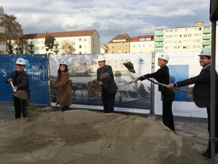 Another milestone for the Heiners urban development project in Neu-Ulm: The groundbreaking ceremony for the project, which just received a polis award, took place in the presence of Ministerialrätin Petra Kramer from the Bavarian State Ministry of Housing, Construction and Transport, Mayor Katrin Albsteiger and Berthold Stier, Managing Director of the Neu-Ulm Development Company. For blocher partners, Senior Partner Wolfgang Mairinger was on site for the ceremony. Learn more about the multifaceted, mixed-use building.