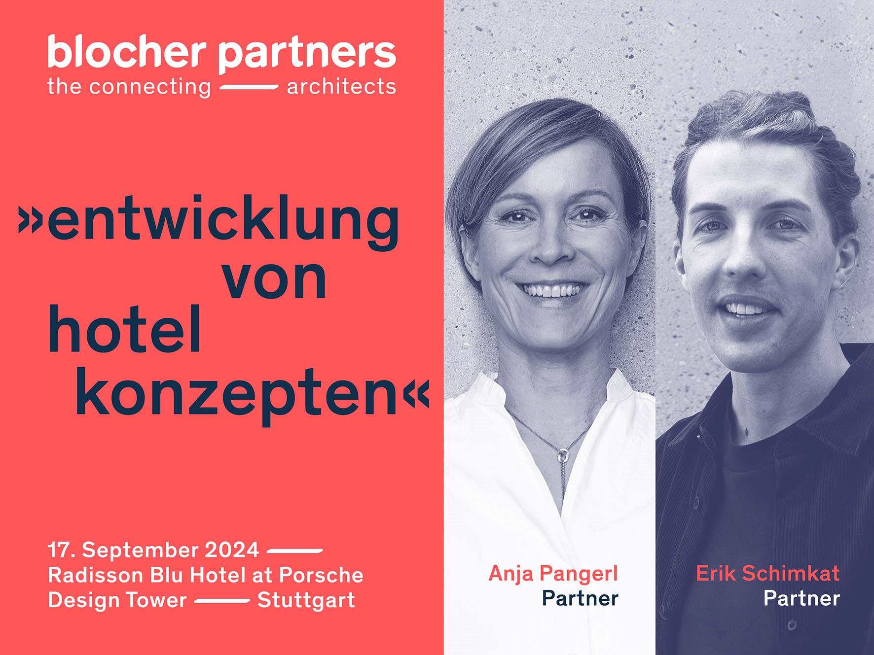 This year, the industry will once again find out everything that's hot in hotel design at the “Trends in Hotel Design” conference organized by the trade magazine “Hotelbau”. It will take place on September 17 at the Radisson Blu Hotel at Porsche Design Tower in Stuttgart. In-depth discussions are planned in the “Development of Hotel Concepts” section, where our partner Anja Pangerl and Erik Schimkat, Managing Director of blocher partners sens, will moderate the “City Hotels” workshop. More about the conference at www.hotelbau.de