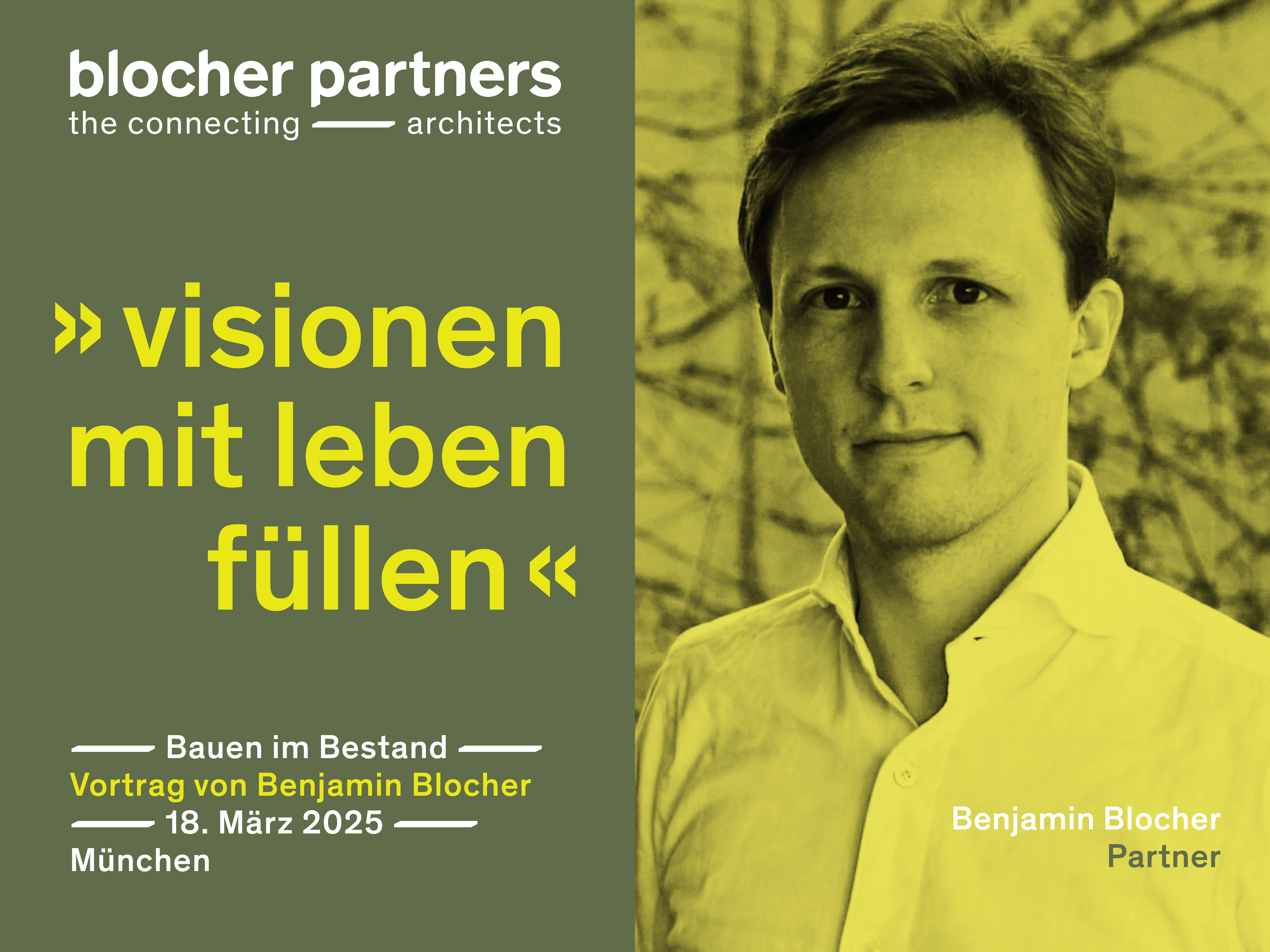 On March 18, the event “Bauen im Bestand” (Building in Existing Structures) will take place in Munich, where our partner Benjamin will present his lecture »Bringing Visions to Life« In his talk, he will explore how existing building structures can be revitalized through creative concepts and innovative interior architecture.