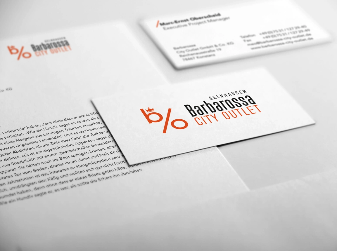Logo Redesign, Business Papers, Web Design, Graphic Concept, Marketing — Barbarossa City Outlet GmbH & Co. KG
