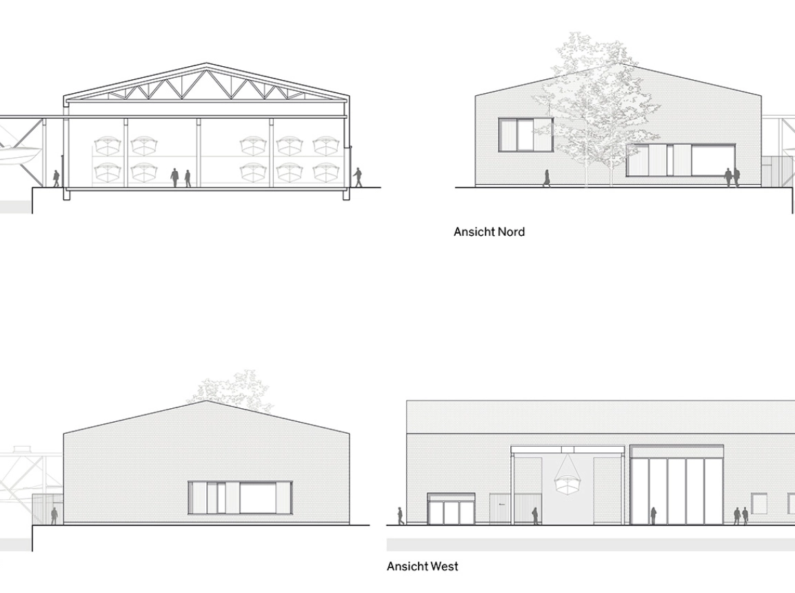 for the BMK yacht marina was to take the great recreational quality of the place thanks to its exposed position to the next level and communicate the brand in all three dimensions. The list of measures to be taken aims to create a complete ensemble which will considering the reconstruction of the touristic bicycle traffic as well as the future development of the harbour area. Pride of place goes to the new standalone administrative building with its club rooms, shaped after an old industrial building. A place has been created that promises both deceleration and inspiration – with a comprehensive range of services and co-working spaces architecture.