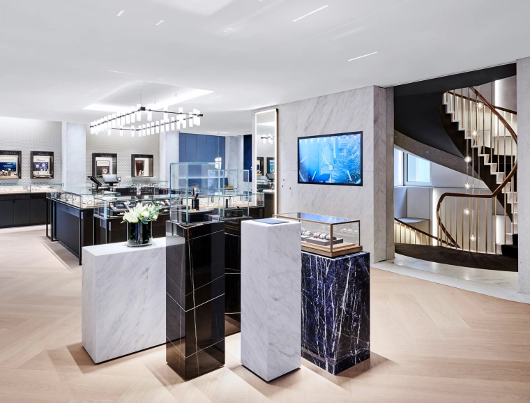 In the final analysis, the designers created a new and modern flagship store with an exterior and interior that complement one another; and they created spaces where Bucherer's luxury wares are perfectly displayed.
