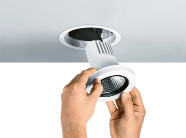 A powerful LED recessed spotlight with a small installation size, Cardan evolution ensures a quiet, unobtrusive ceiling design. The asymmetrical arrangement means