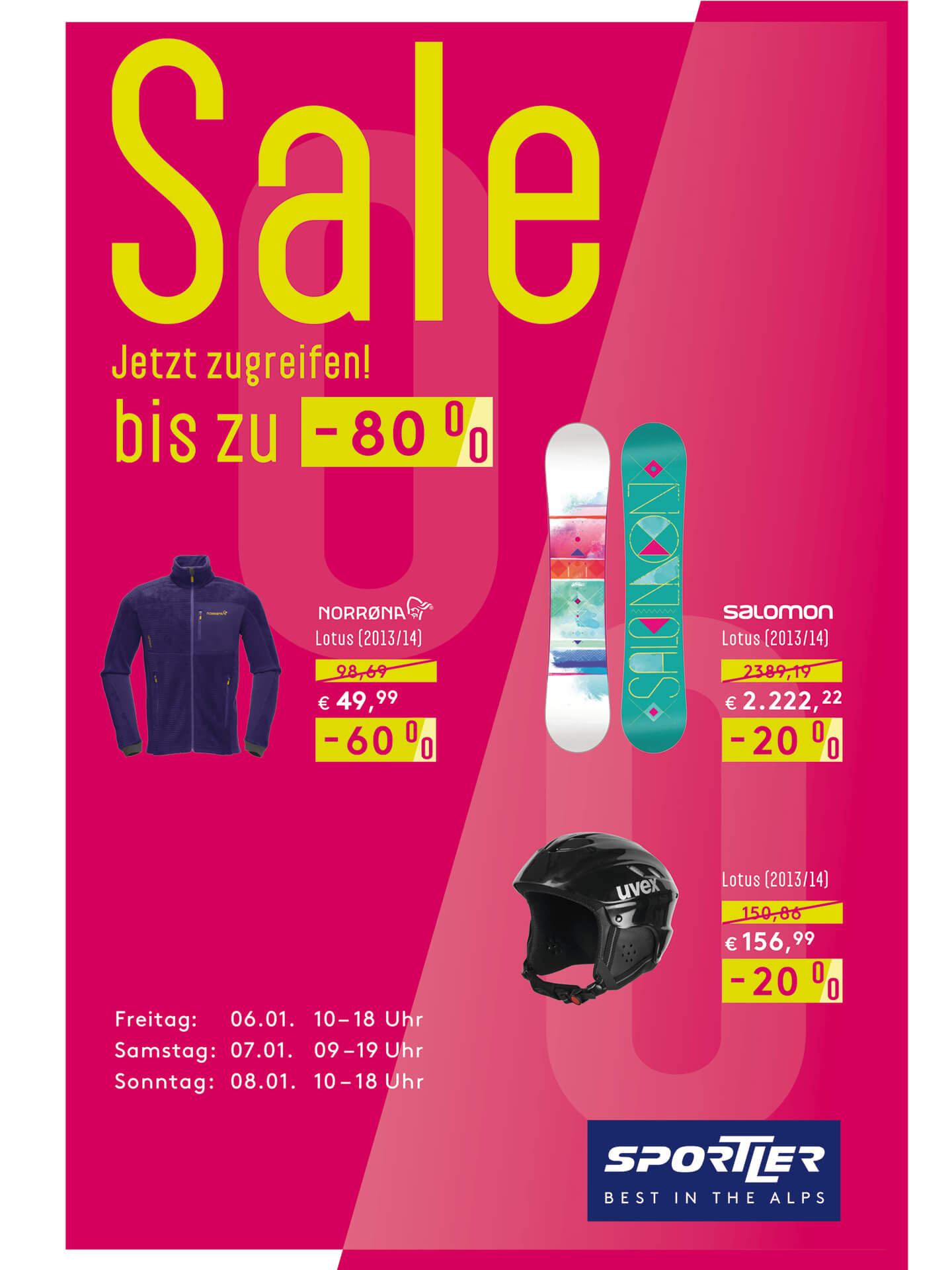 Together with the frames and their corresponding colors, the diagonal becomes a key visual for Sportler. Through this connection, the Sportler brand is transported and, at the same time, is always recognizable, whether for a sales campaign or, for example, for the product offerings from one of the sub-brands such as Bike or Alpin.