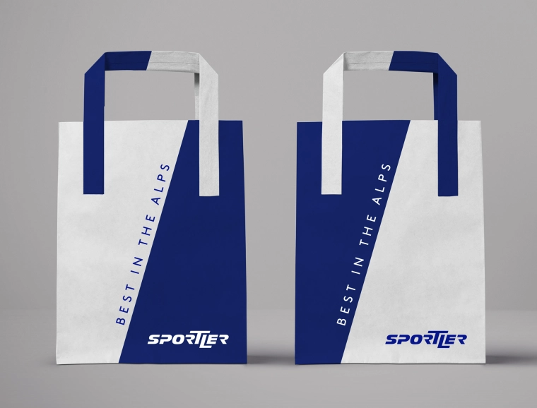 For 40 years, Sportler AG in Bozen has scored big as the leading sporting goods retailer. Sportler’s main themes – dynamics and movement – were picked up in the new corporate design: The dominant image is a steeply sloping line that brings in everything from office equipment to image advertisements, from catalogue layouts to retail outfitting.