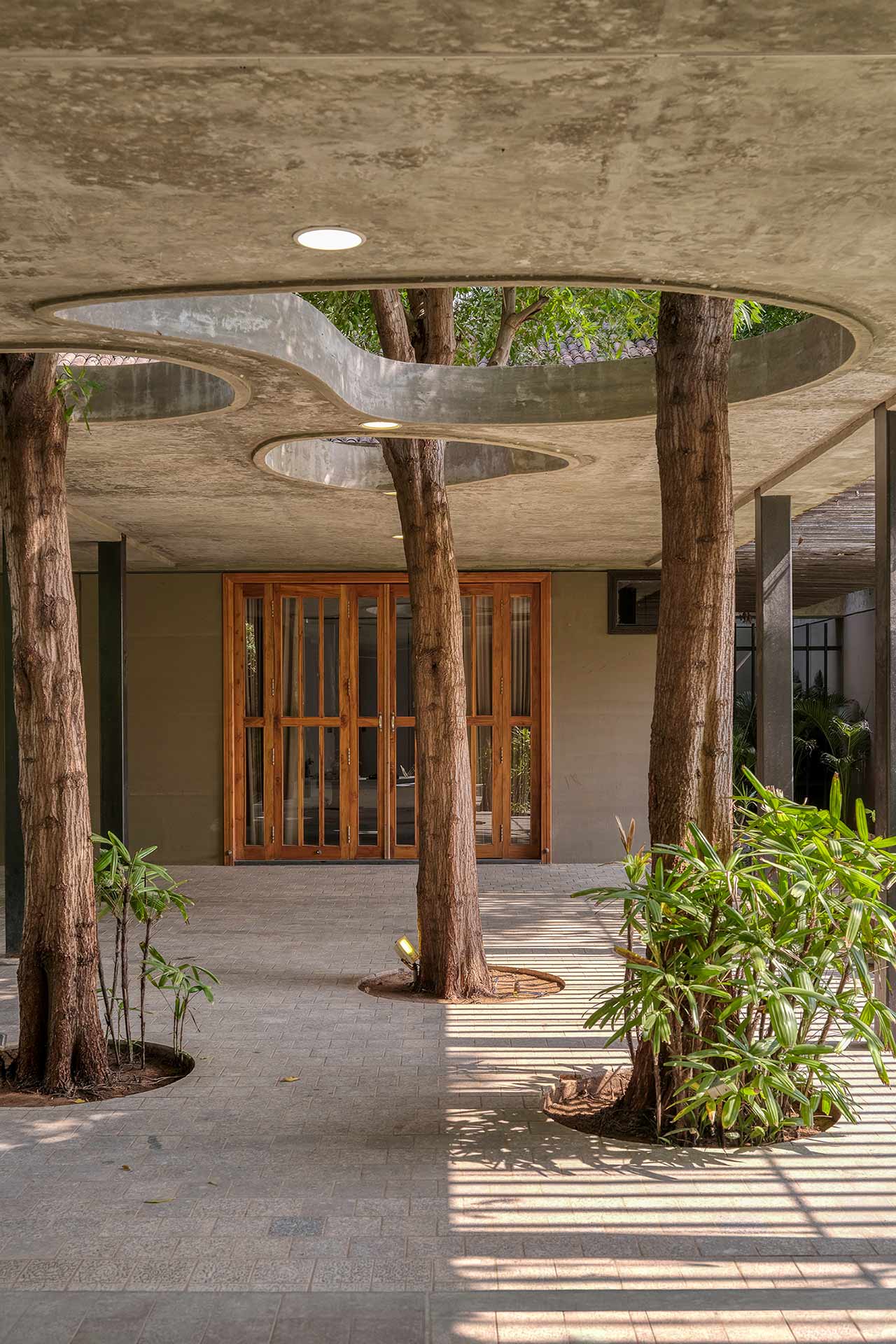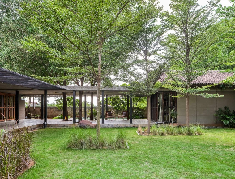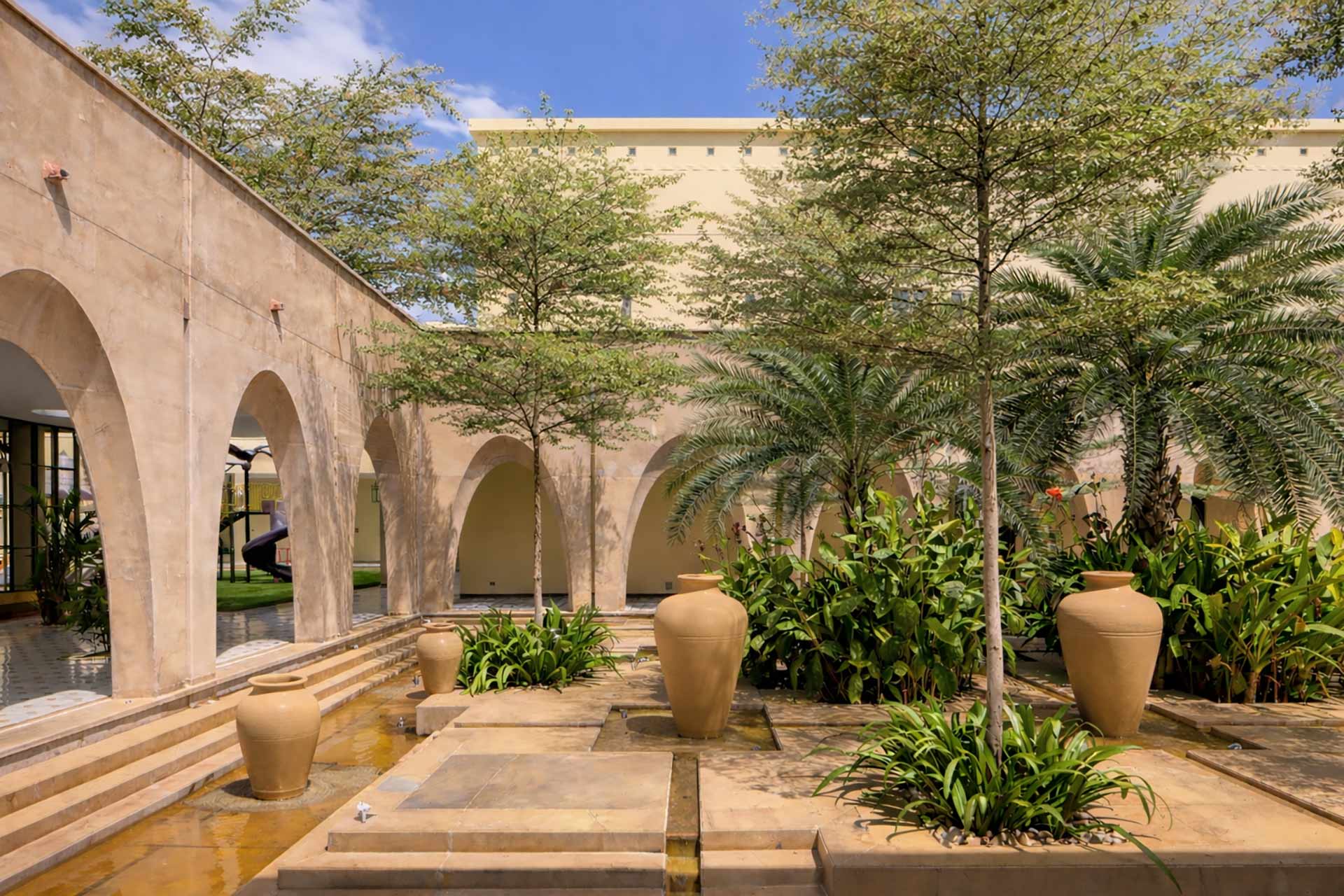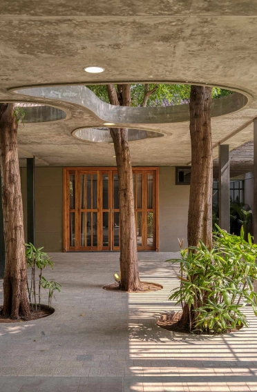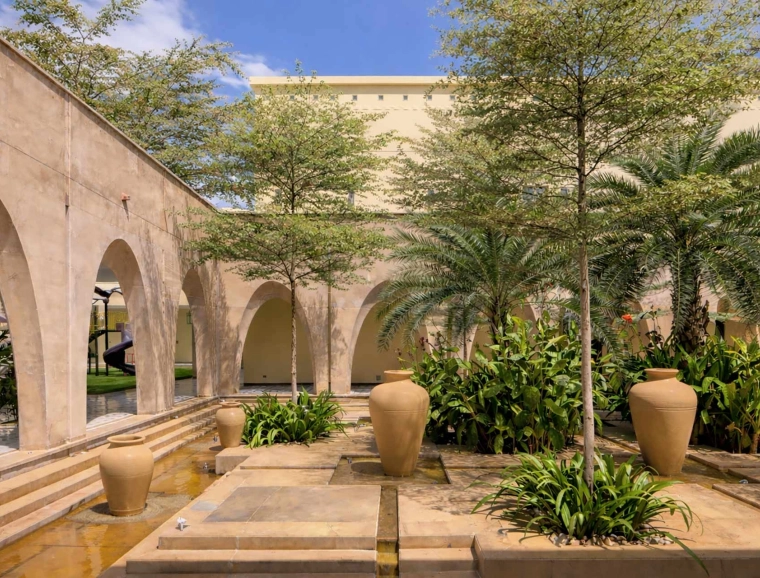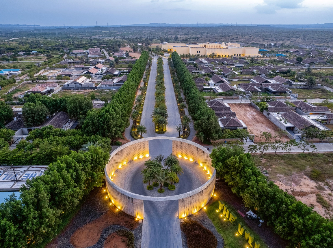 A holiday residence complex with 650 bungalows, a clubhouse, restaurant, pool, spa, bistro and extensive sports facilities is going up in the Indian state of Gujarat. With sustainability in mind, and through the use of recycled materials, an area is being developed in this dry and hot region that resembles an oasis, its streets lined with date palms and lush green areas. Bungalows will be complemented by spacious, shaded outdoor spaces and will offer a high quality of stay. Construction is based on traditional Indian building techniques, reinterpreted using modern technological knowledge.