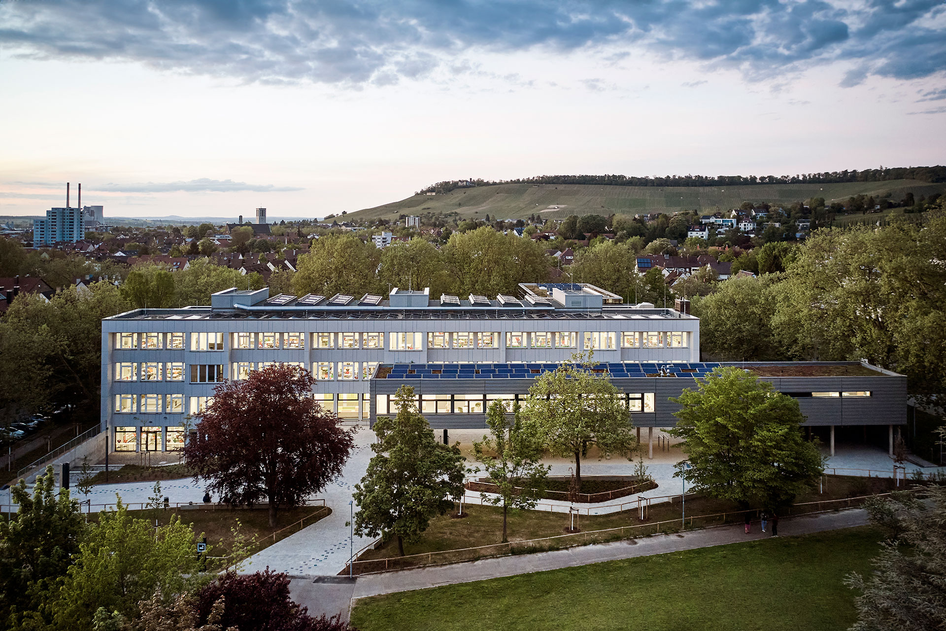 In terms of energy efficiency, the building was upgraded in a variety of ways: The 1,850 square metre façade was insulated, the roof and windows were replaced and an air heat pump now supplements the gas heating. A photovoltaic system on the flat roof generates emission-free electricity. "By preserving the building fabric, reusing materials and upgrading the energy efficiency of the building envelope and building services, the refurbishment is making a contribution to sustainable and climate-friendly construction," said Andreas Ringle, Mayor of Heilbronn, at the opening of the school.