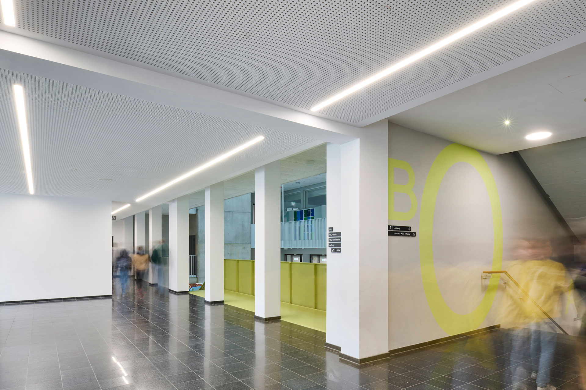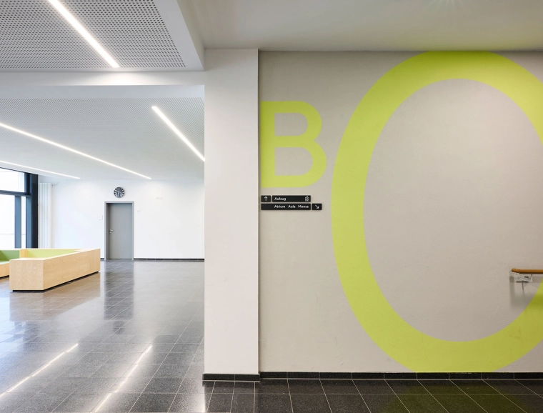 blocher partners has modernised the Fritz Ulrich School in Heilbronn. After three years of construction while the school continued to operate, the entire building can now be used again. The signage system was designed by the communications agency typenraum.