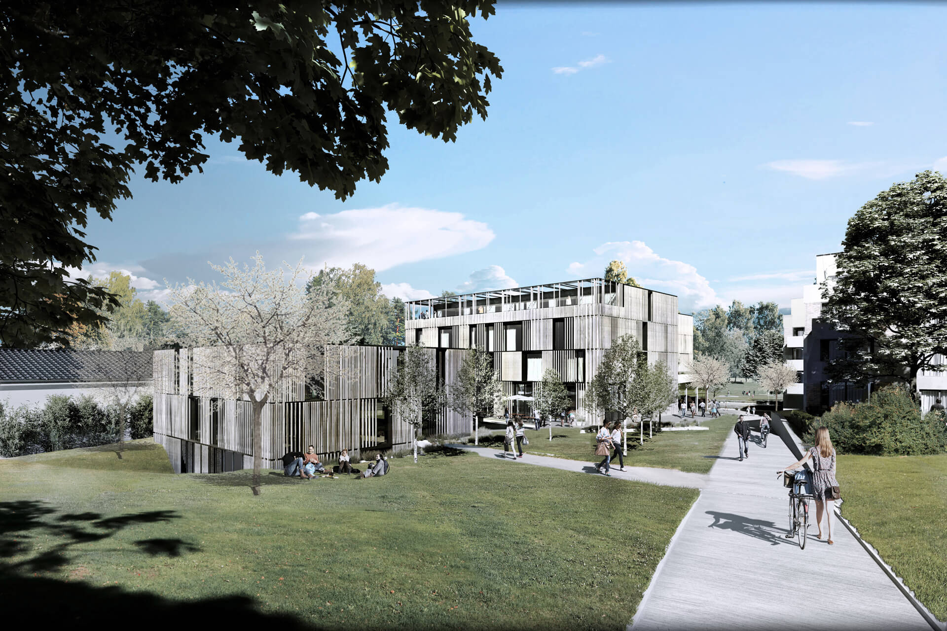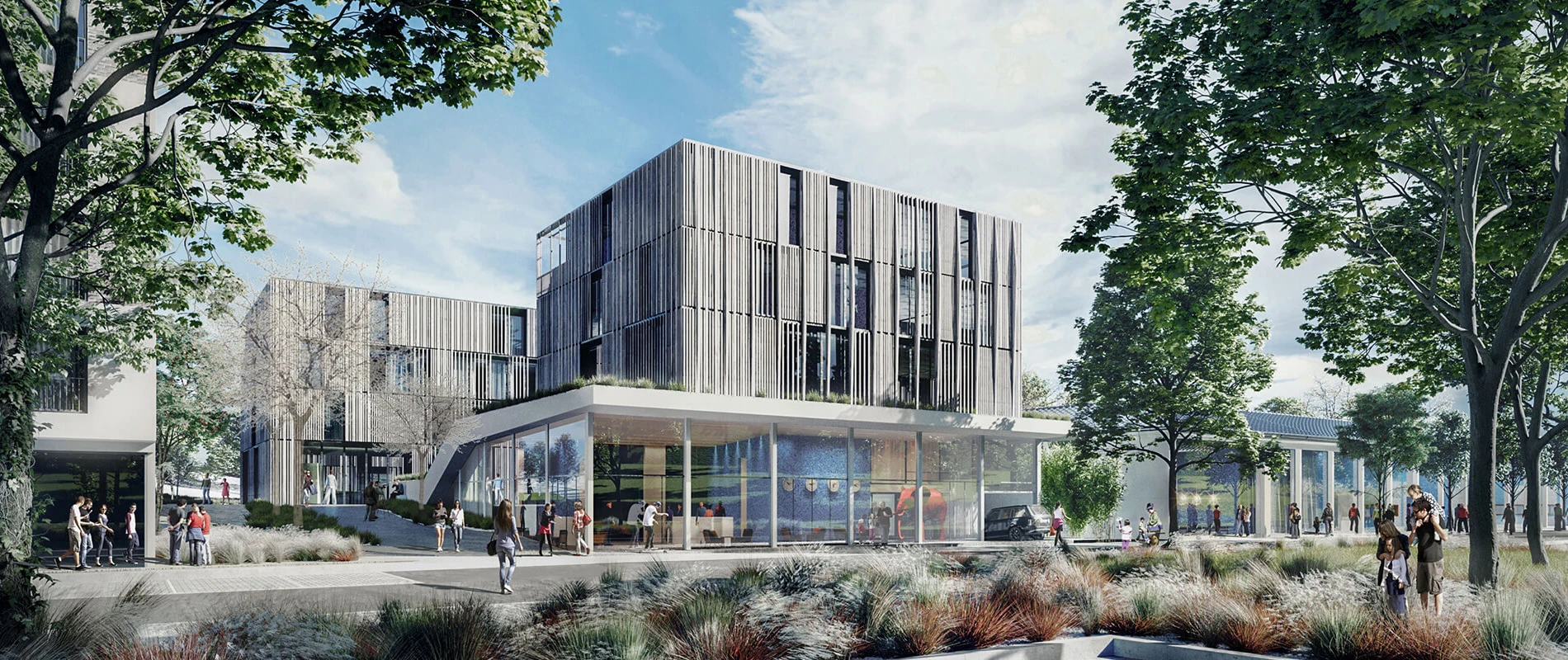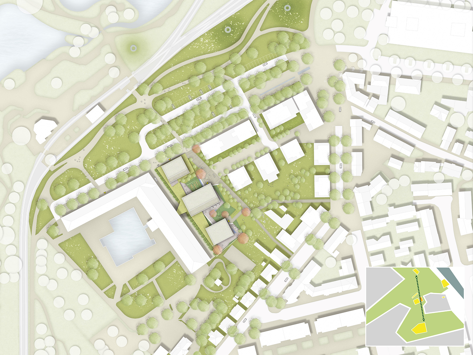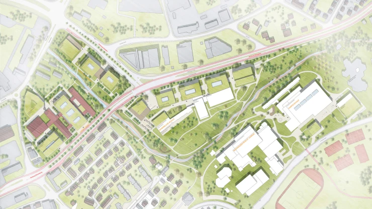A new health care campus is going up between Rosensteinpark and Villa Berg, directly alongside the Berg Spa. The design is based on a harmonious integration of the architecture into the surrounding landscape and wins points above all for its open spaces: The planners make skillful use of the varied ground levels, creating attractive, diversely designed open spaces as well as protected inner courtyards around the complex of buildings, which consists of three interconnected structures. The concept deliberately emphasizes the synergies between the neighbouring institutions, which are spatially interconnected. The goal: Establish a new forum for health, integrating the most innovative diagnostics and preventive and therapeutic elements – and form a new, strong address in Stuttgart’s green belt of inner city parks.