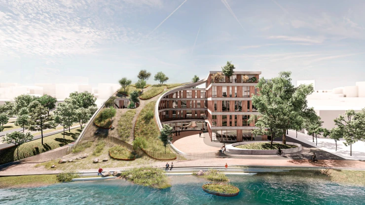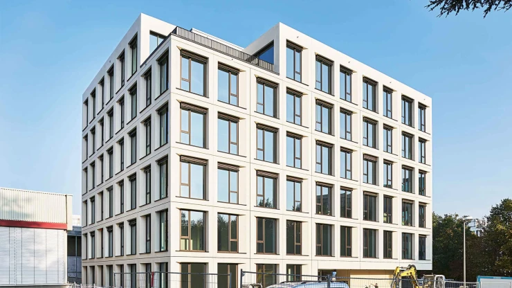 The new Bauhaus campus in Mannheim combines old and new in a modern working environment. A new five-storey building constructed to the KfW40 standard complements the existing building and provides space for around 840 employees. Two open courtyards, light-flooded atriums and a green roof landscape create a welcoming atmosphere. Flexible workplaces and versatile meeting places characterize the building, as does the sculptural wooden staircase in the atrium.