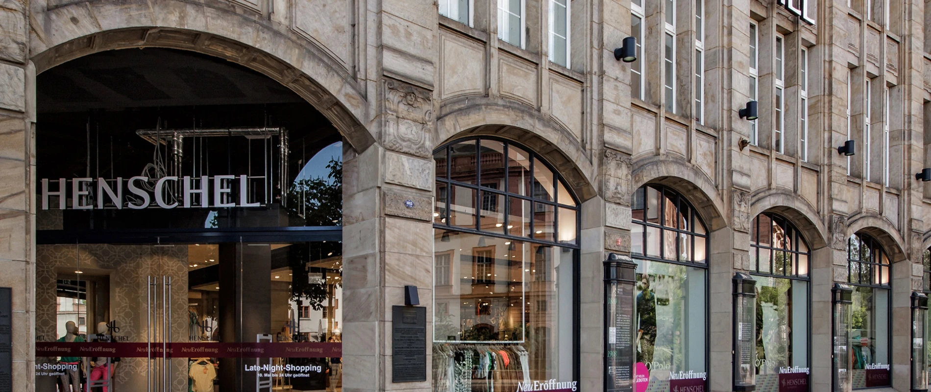 Concise name, architectural attention-getters, modern retail spaces. Modehaus Henschel makes a brand new entrance since April 2013. Blocher Blocher View planned and implemented the graphical brand appearance that accompanied the conversion by Blocher Blocher Partners. They singled out the Henschel capital as a calligraphic sign and placed it in front of the location line. The new corporate design achieves a total brand presence. Since 2011 blocher partners has been collaborating with Henschel. Its accomplishments include the modernization at the Heidelberg location.