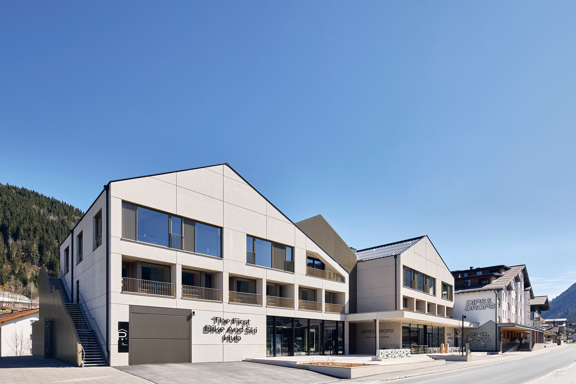 The Dips & Drops marks the start of a new chapter for the traditional Hotel Tauernhof in Flachau. Together with the architects and interior designers, an innovative concept has been developed that positions the hotel as a modern hub for bike and ski enthusiasts - and rethinks the architecture, interior design and usage concept.