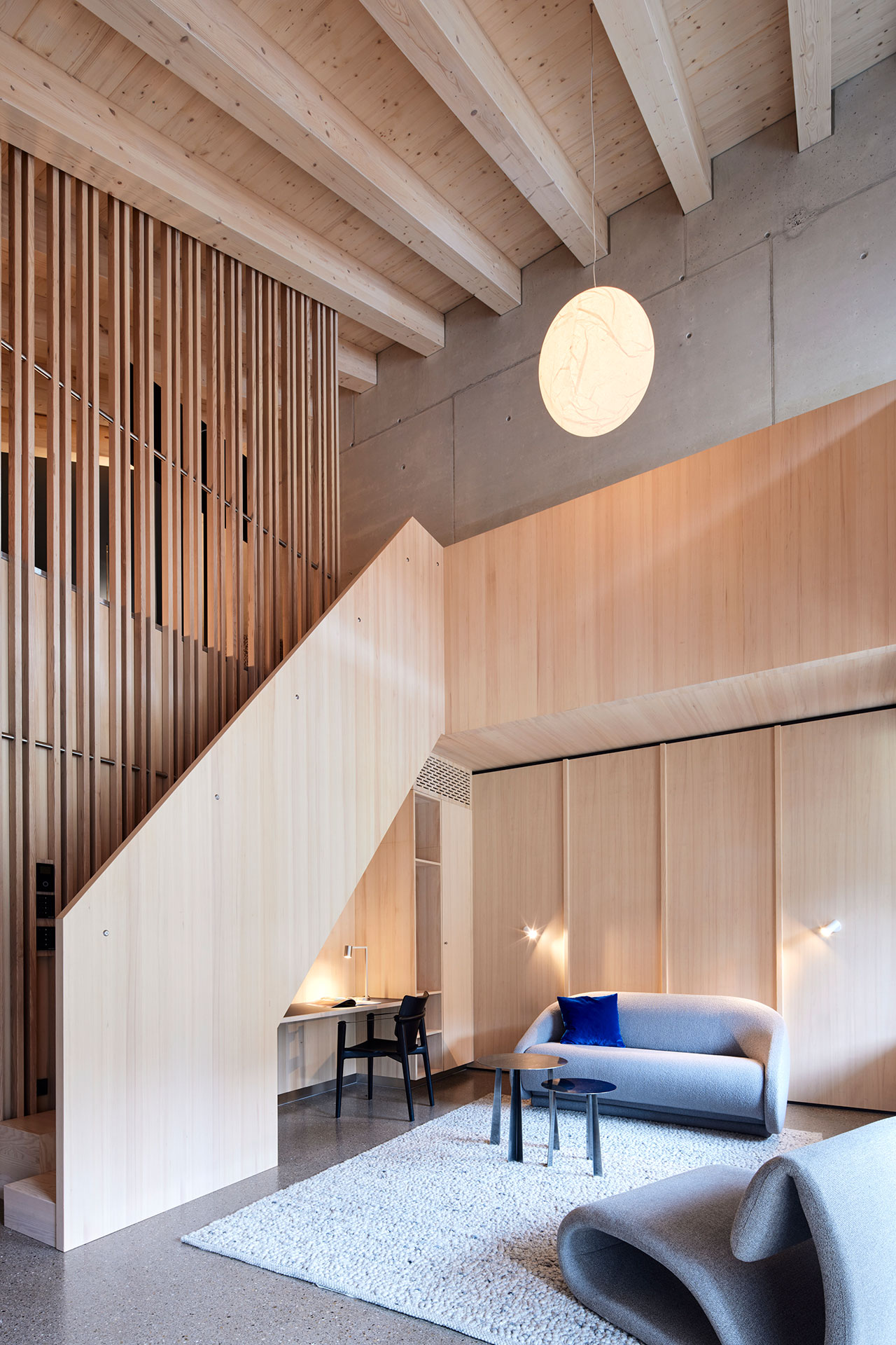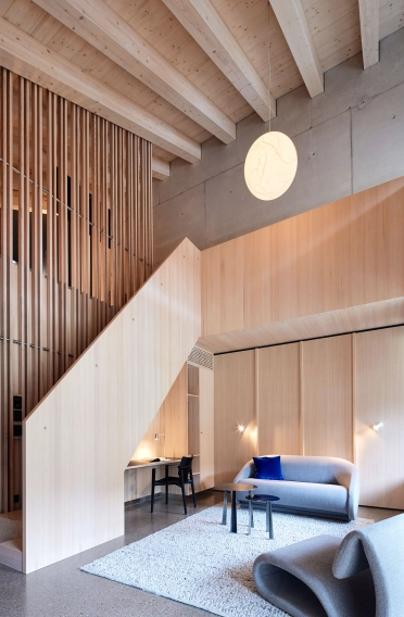 In addition to the guests, the focus was also on the employees: the modernization of the staff rooms, fire protection measures and future-proof building technology were part of the comprehensive refurbishment of the existing building. The heart of the hotel is the bike and ski hub - a central contact point with rental, repair workshop and community spaces that underline its character as the “First Bike and Ski Hub”.
