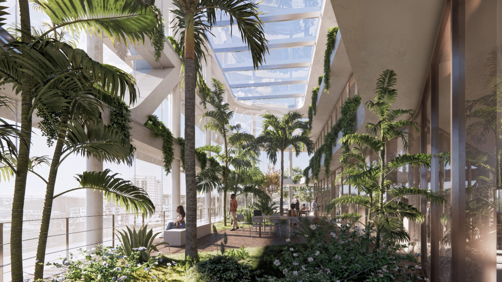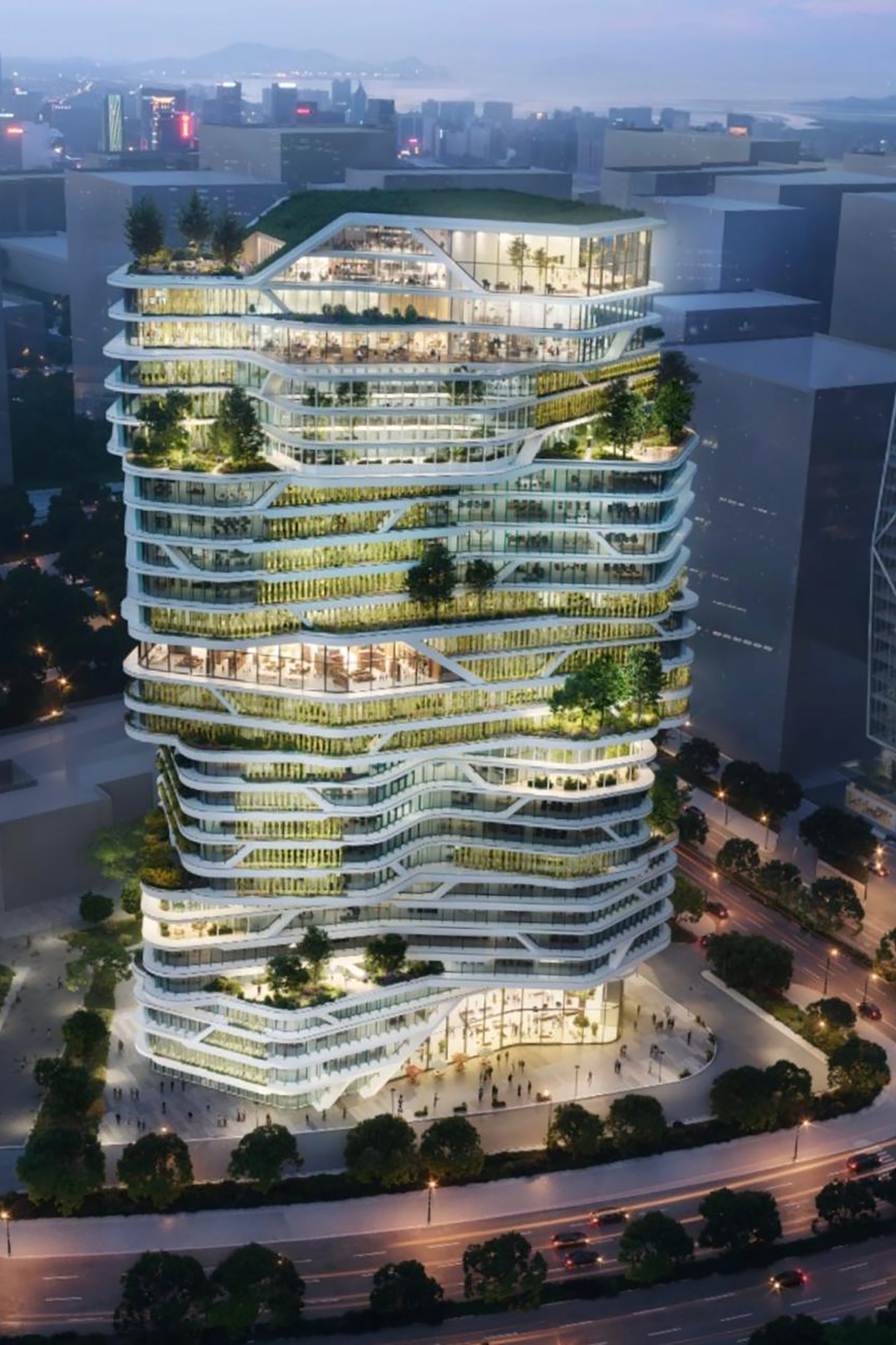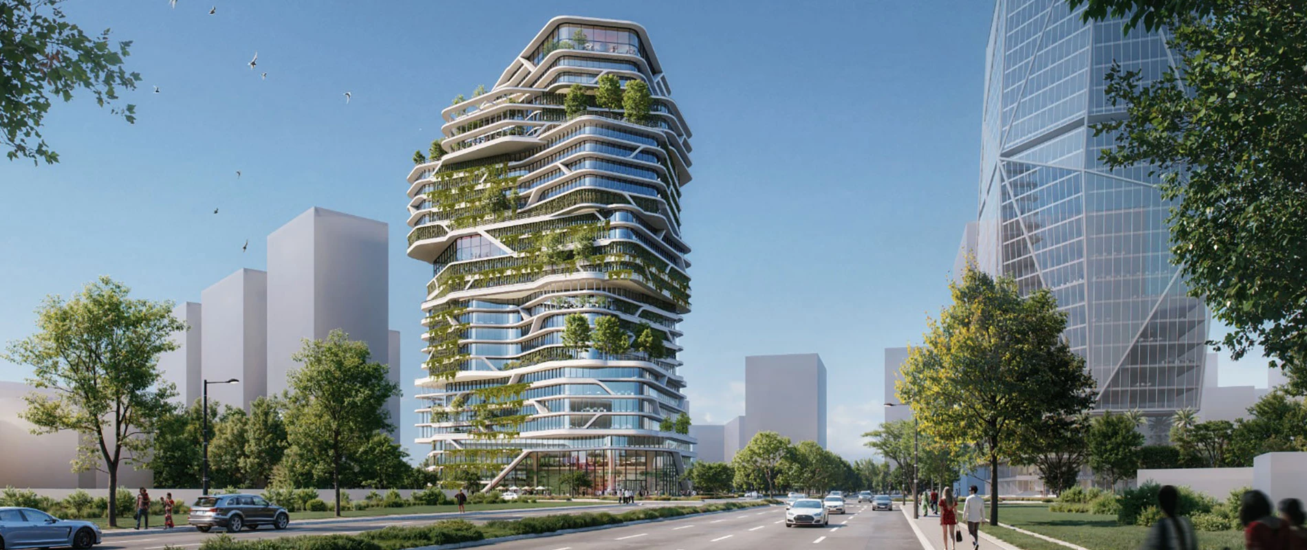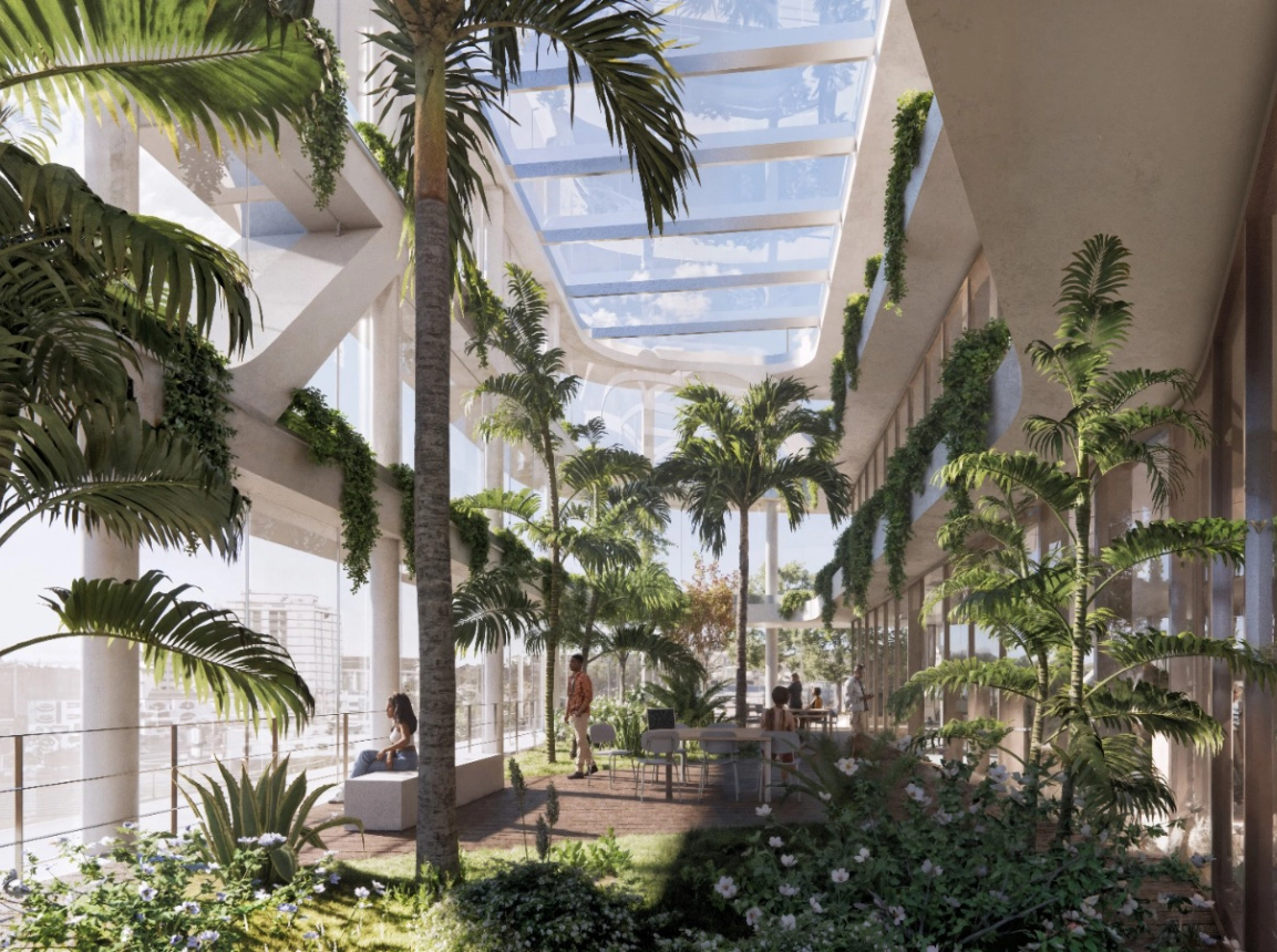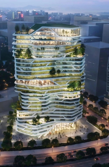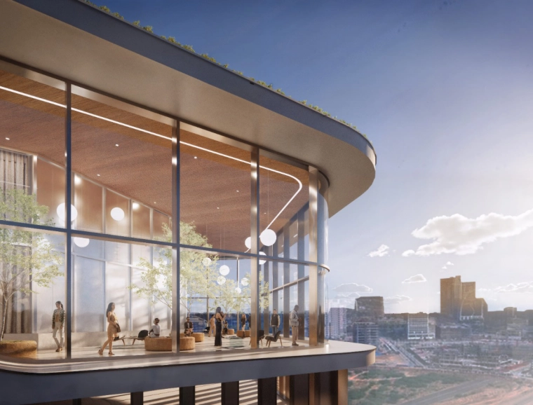 Architecturally, the building makes a strong statement in the urban space - with an unobstructed view of the Sabarmati River and a striking façade that impresses both in terms of climate and design thanks to sunbreakers and green retreat zones. The aim is to achieve IGBC Platinum certification.