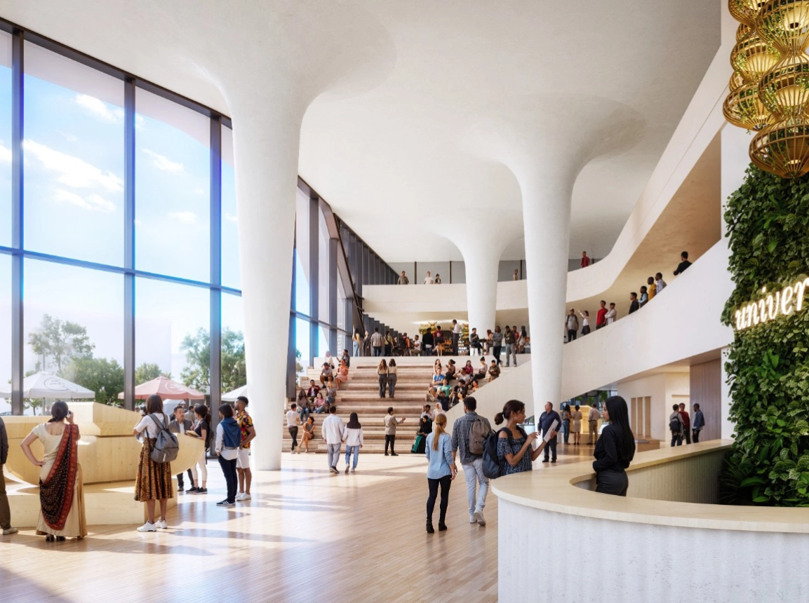 New construction of a vertical university campus — Gift City, India — 55,000 m²