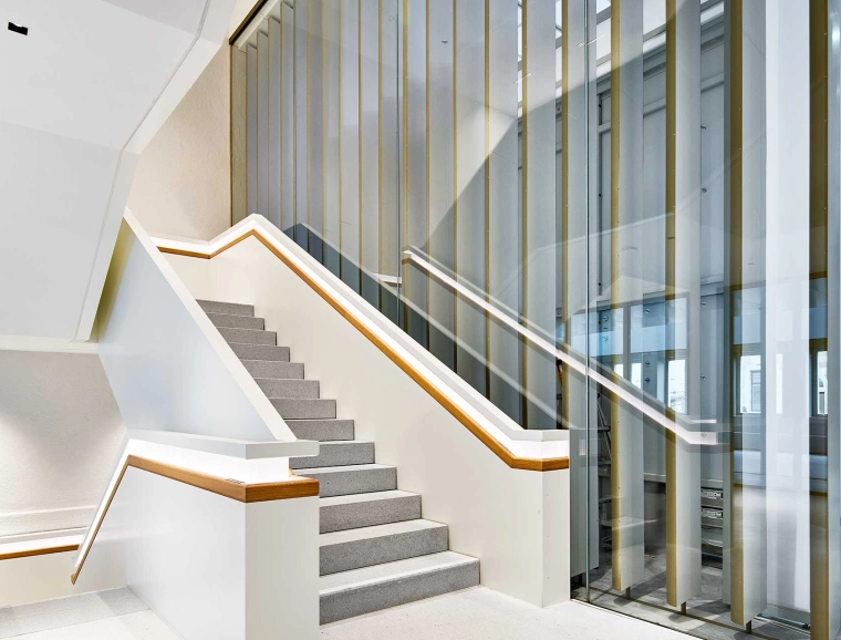 The architecturally striking building in the heart of Stuttgart looks back on an eventful history, which blocher partners has now helped to write with the refurbishment and redesign. Both inside and out, the architects attached great importance to creating a stimulating dialogue between past and present. They followed the ideal of the restrained design language of a tradition-conscious modernism in the spirit of Paul Bonatz and in this way made it possible to retain the style of the old building in terms of colour and materiality.