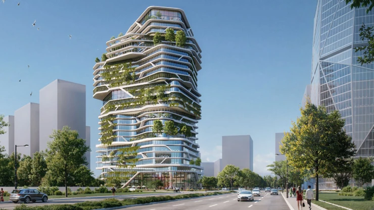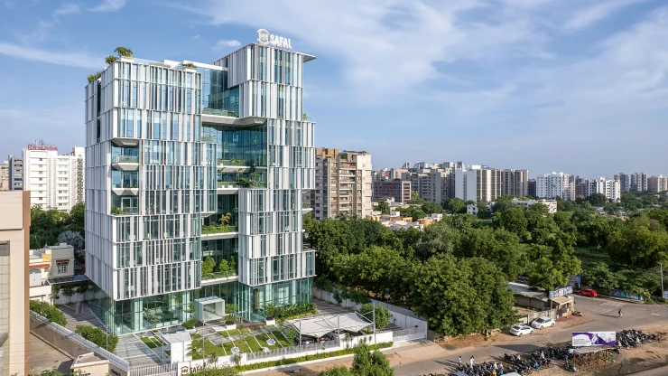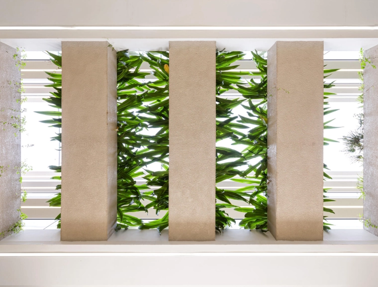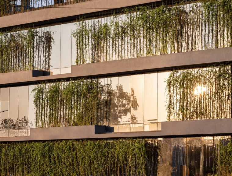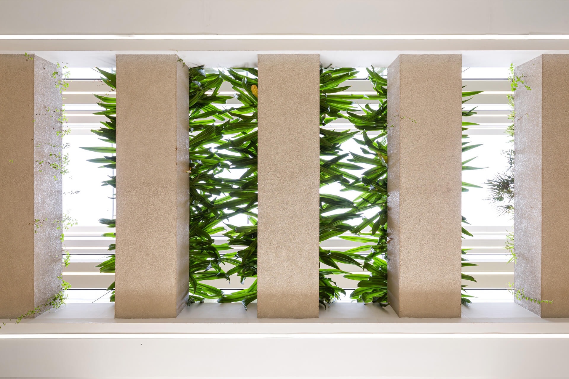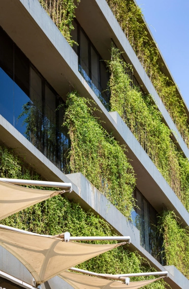 The future looks bright, with the Marvel Artiza retail and commercial building: It will offer attractive space with five storeys of offices and a shopping mall surrounding a central, light-filled atrium. Visible from a distance, the rectangular new building is located on an access road to Hubli, an Indian city with more than a million inhabitants. The architects designed the façade as a vertical garden: plantings help block the sun, create privacy, and draw attention in the urban landscape.