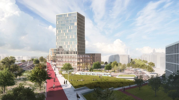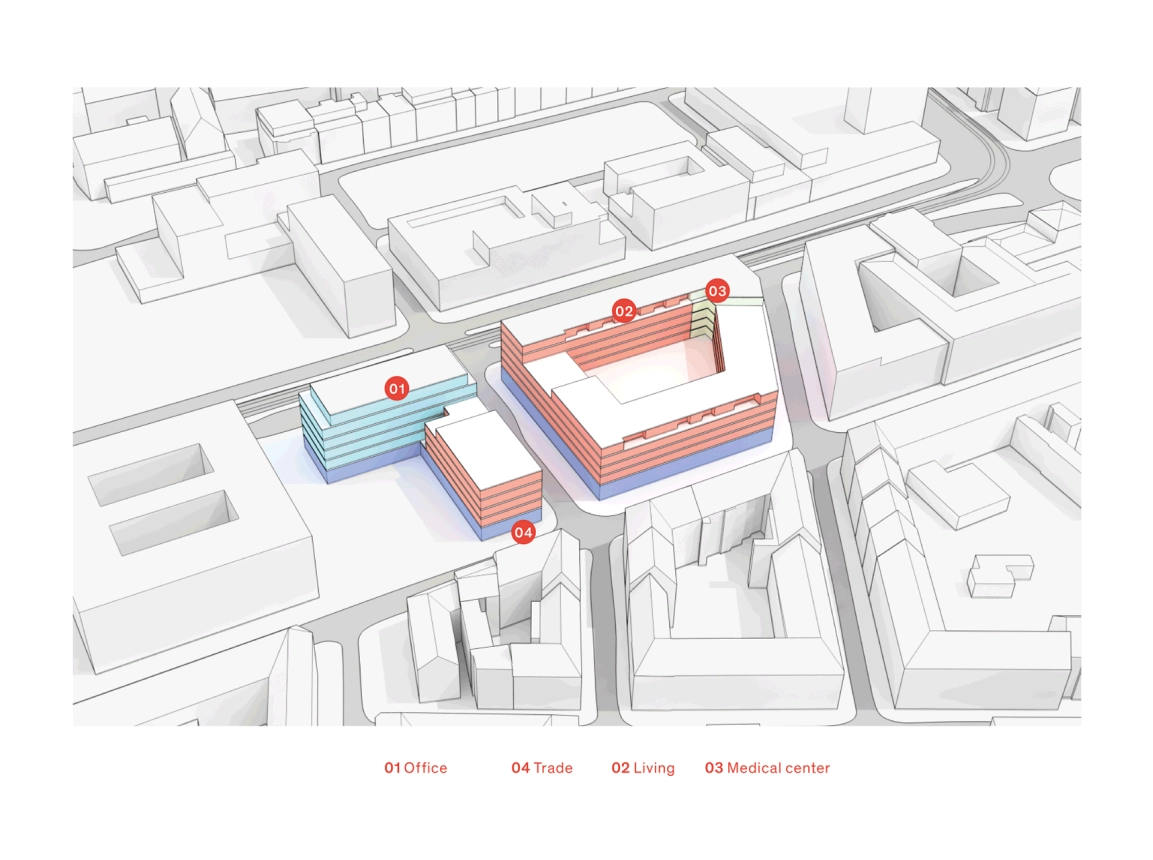 A new, mixed-usage quarter is fast arising on one of the main urban arteries in Heidelberg. While the ensemble facing the Kurfürsten-Anlage forms an urban edge, the buildings facing Weststadt and the public square towards the District Court are terraced to create a harmonious transition and breathe new life into the urban fabric. At the same time, the ensemble which is partly designed as a timber construction, acts as an intermediary between the late 19th-century buildings in Bergheim and Weststadt, on the one hand, and the large-sized new builds on Kurfürsten Anlage. The intensive greening of the roofs and terraces serves to foster a favourable micro-climate.