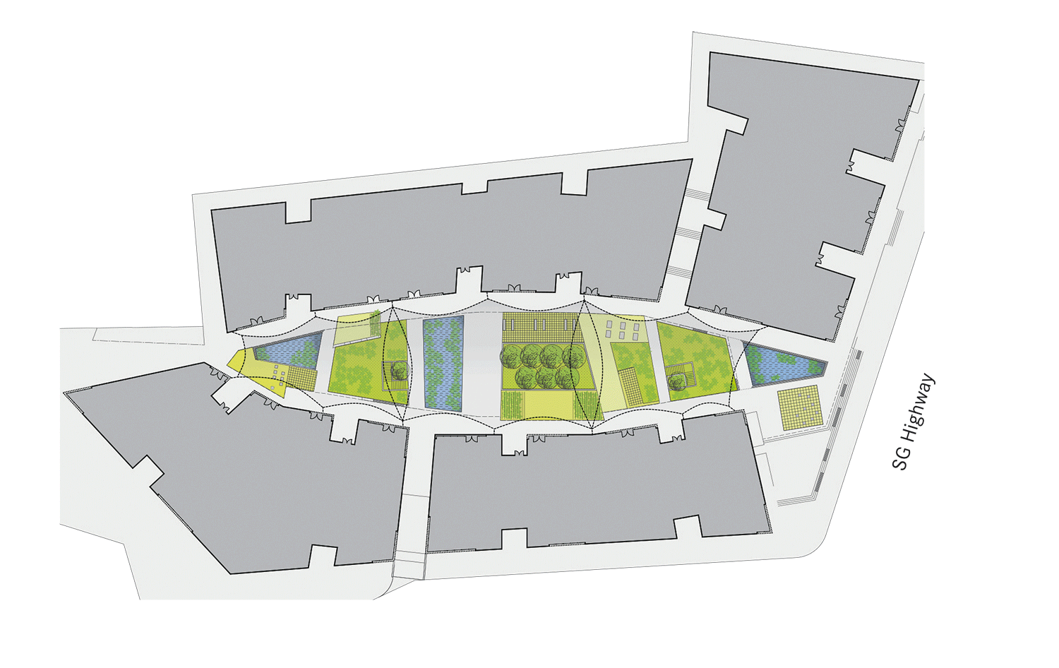 New construction of a retail and business park for retailers, service facilities and restaurants — S.G. Highway, Ahmedabad, India — 25,000 m² — 2012 — HN Safal Group