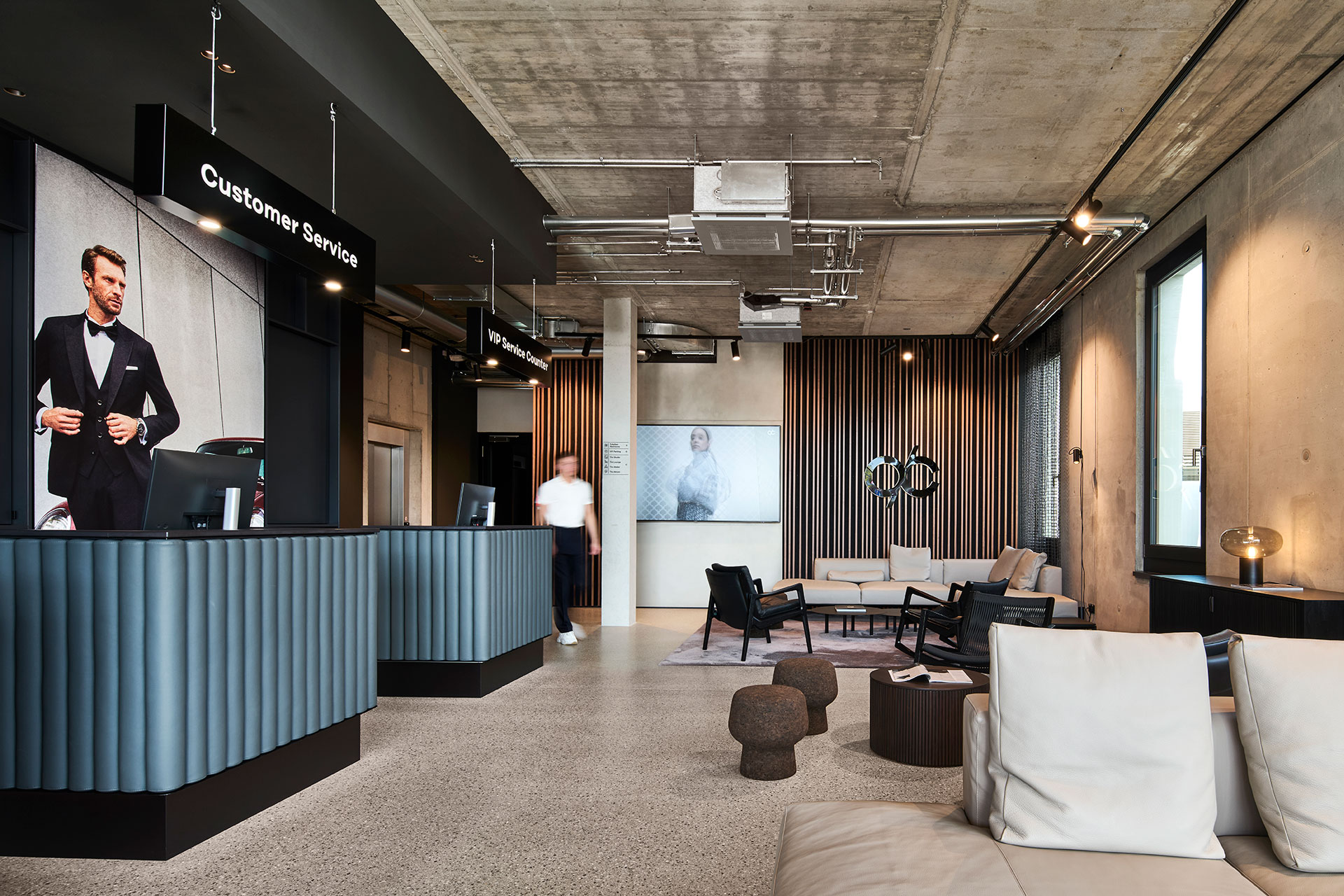Realisation of an information and service centre with adjoining VIP lounge — Reutlinger Straße 60, 72555 Metzingen, Germany — 890 m² — 02.2024 — Outletcity AG, Metzingen