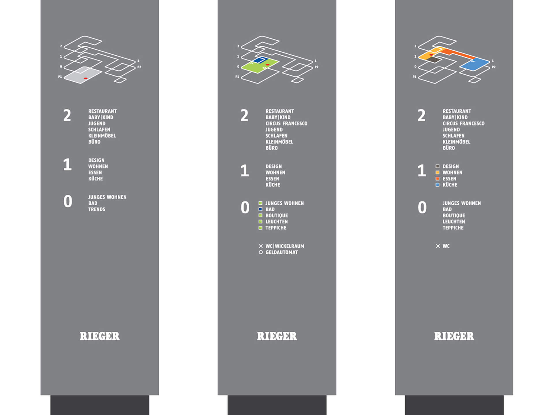Corporate Design, orientation system — Dornierstraße 1+2, 73730, Esslingen, Germany — 2008 — Möbel Rieger GmbH & Co. KG
