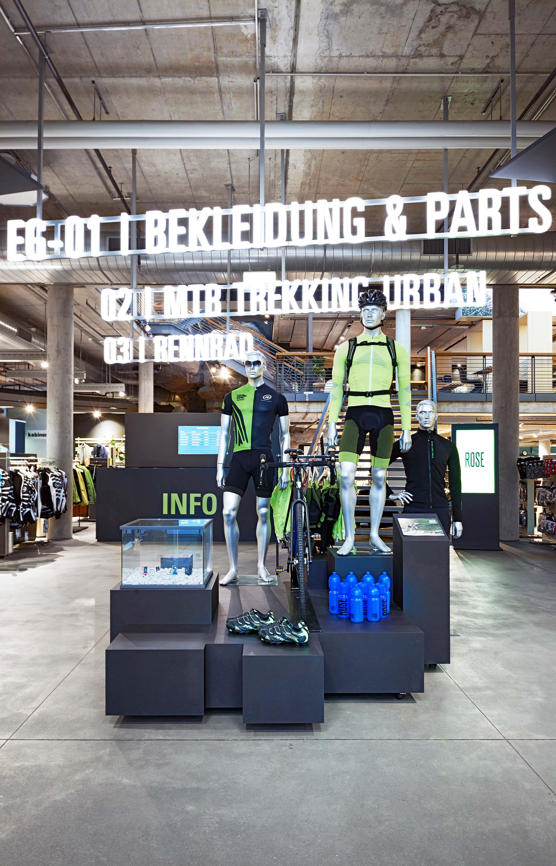 The multiple awarded store of Rose Biketown in Munich led the way: the connection of analog and digital has arrived in our daily life. For the store in Bocholt, the planners transferred the concept on 6,000 square meters and designed it even more interactive and more customer friendly. Since 2003, blocher partner has been collaborating with Rose Bikes. Its accomplishments include the new conception of a store for the bike specialist in Munich.