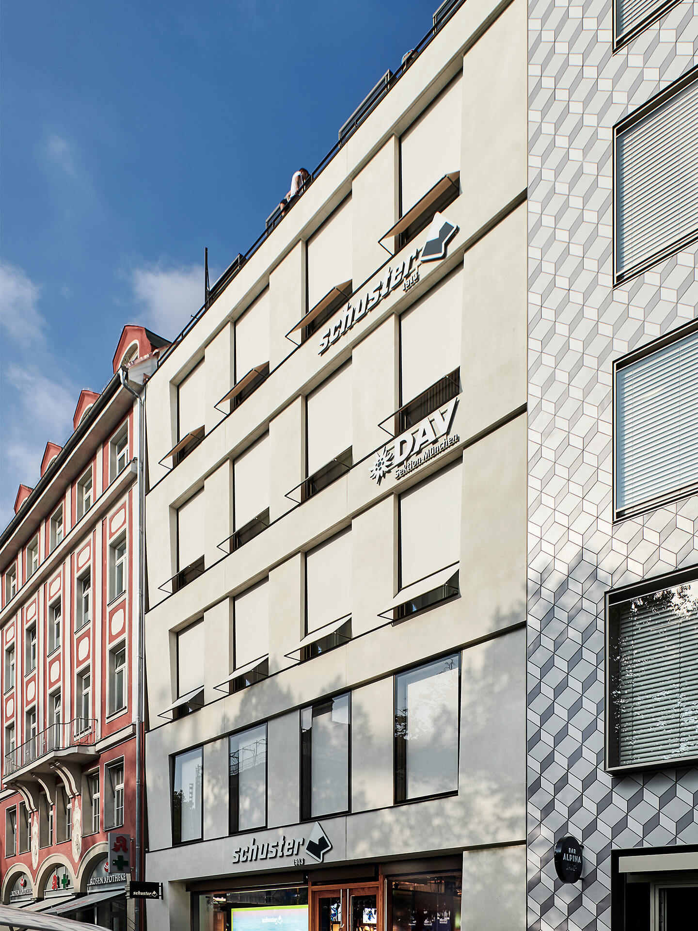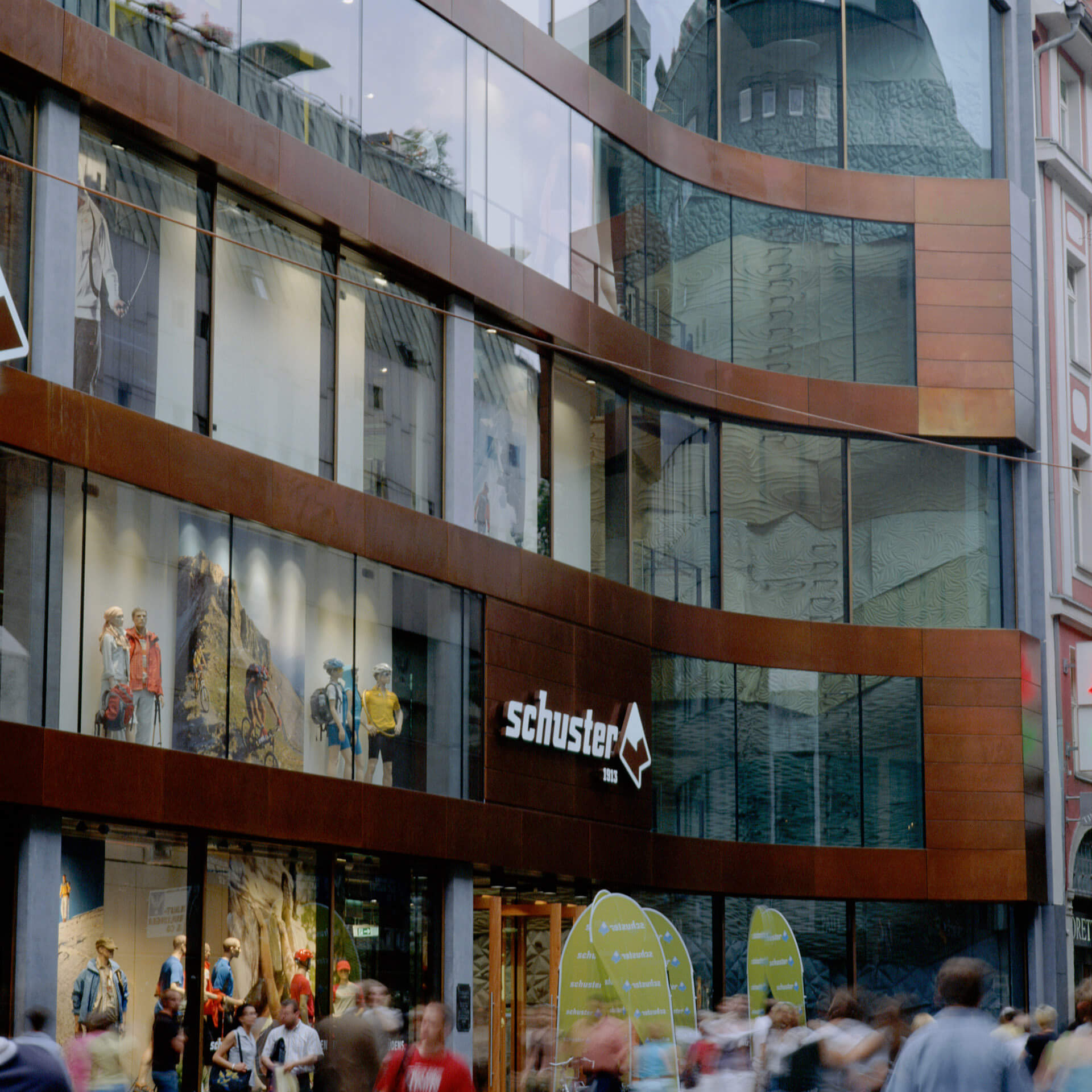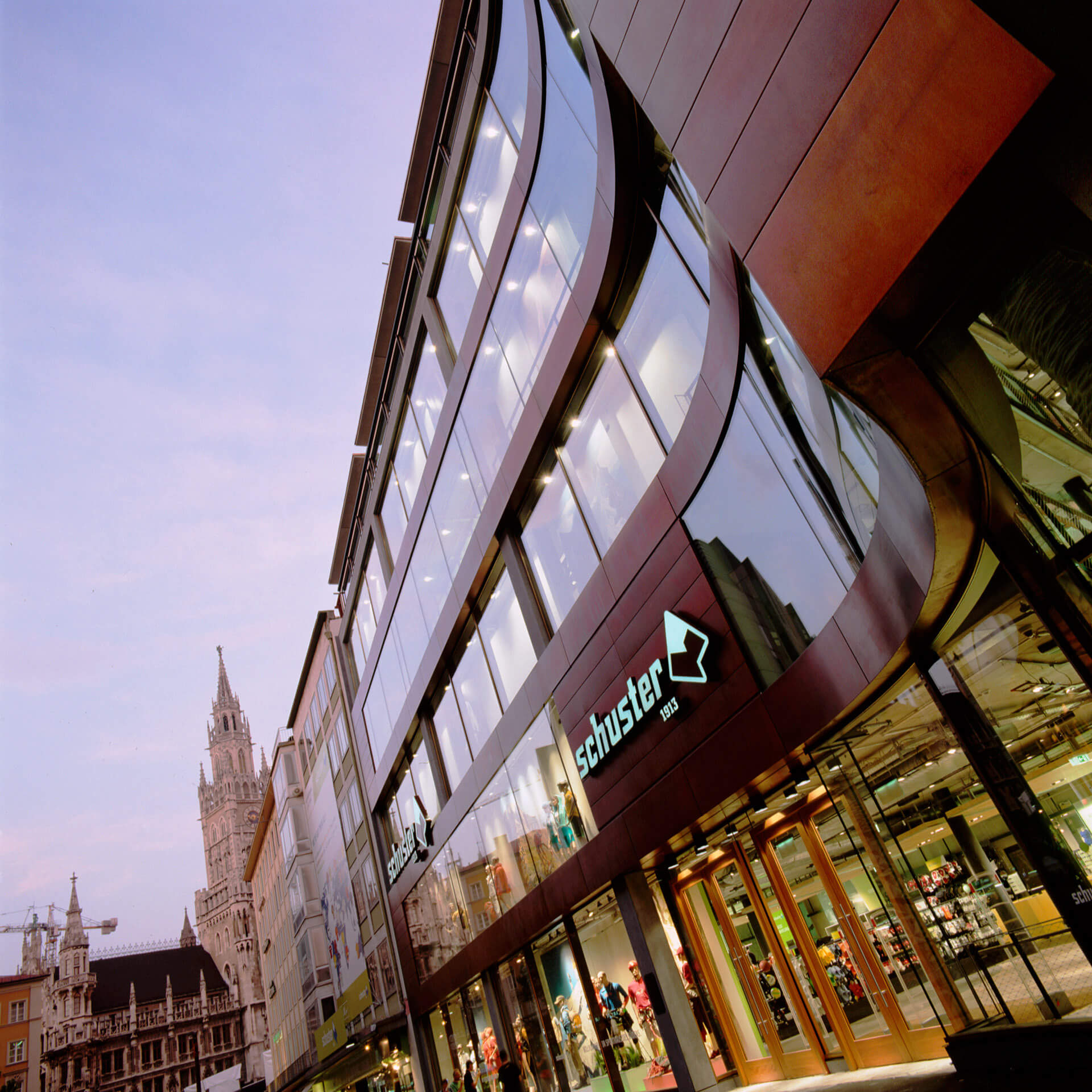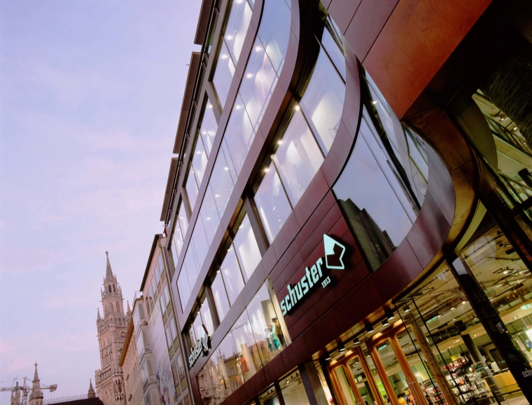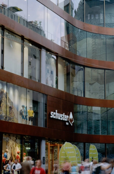 This traditional Munich store is known beyond city borders as a specialist for everything related to alpine mountain sports. In the course of store expansion, the store’s building at Rindermarkt 13 was torn down and rebuilt. The planners were responsible for the new structure as well as for the interior design of the entire sporting goods store. Since 1996, blocher partners has been collaborating with Schuster. Its accomplishments include the new Schuster building, built in 2006.