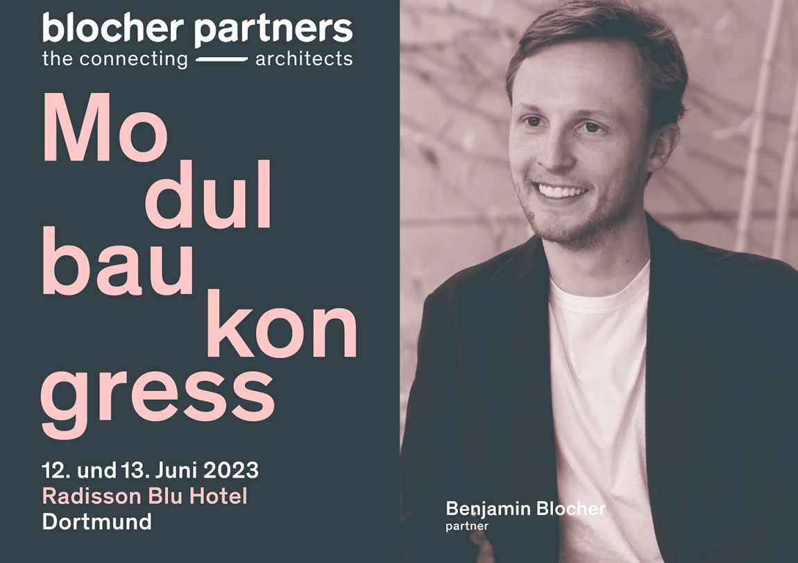 Am Dienstag, 13. Juni, dem zweiten Veranstaltungstag des diesjährigen Modulbau Kongress in Dortmund, wird Benjamin Blocher in seinem Vortrag aktuelle Wohnbauprojekte von blocher partners vorstellen und erklären, welche Lösungen eine modulare Bauweise für aktuelle Fragestellungen wie Wohnungsnot, Fachkräftemangel und Klimakrise bereithält.
