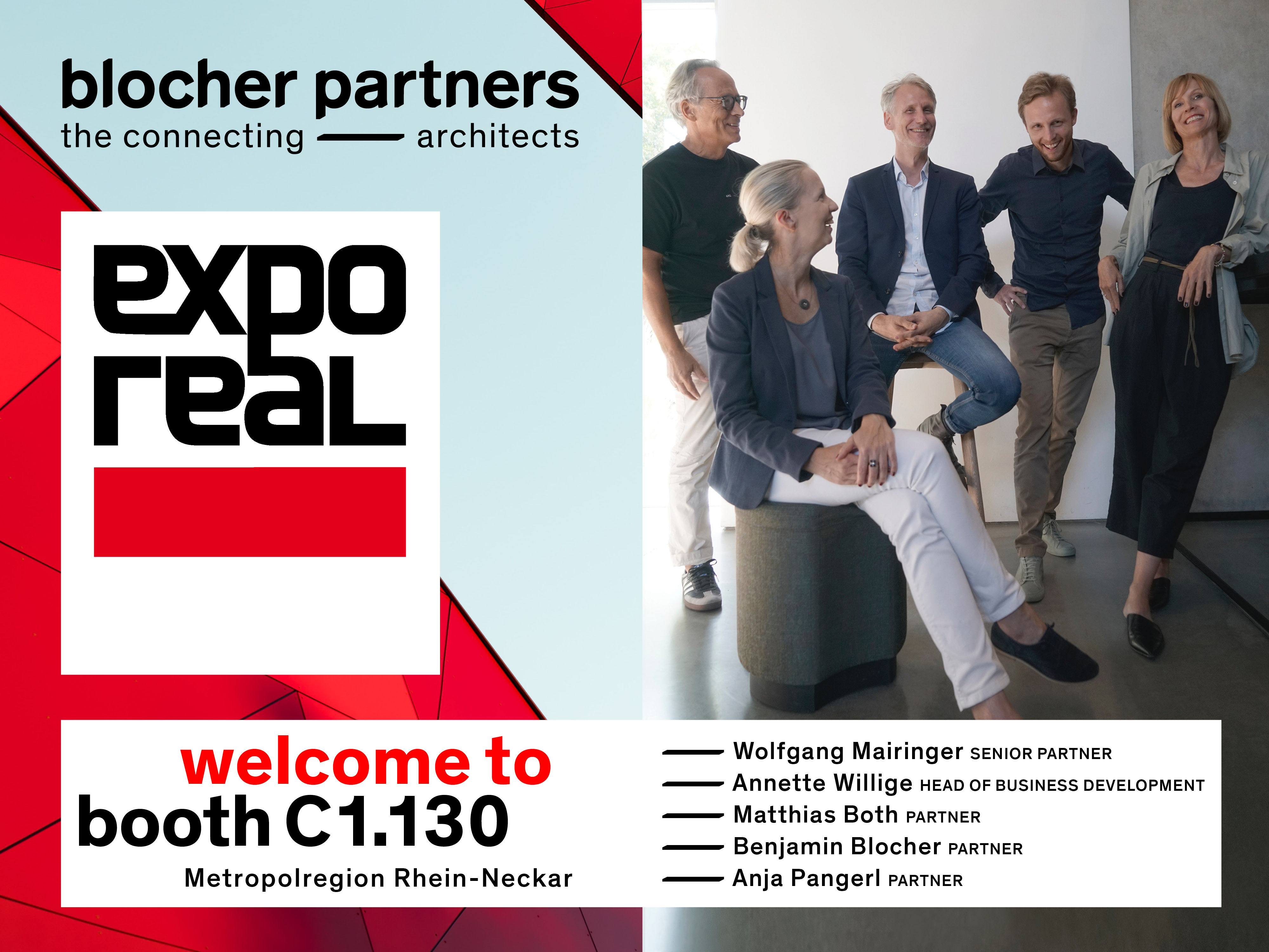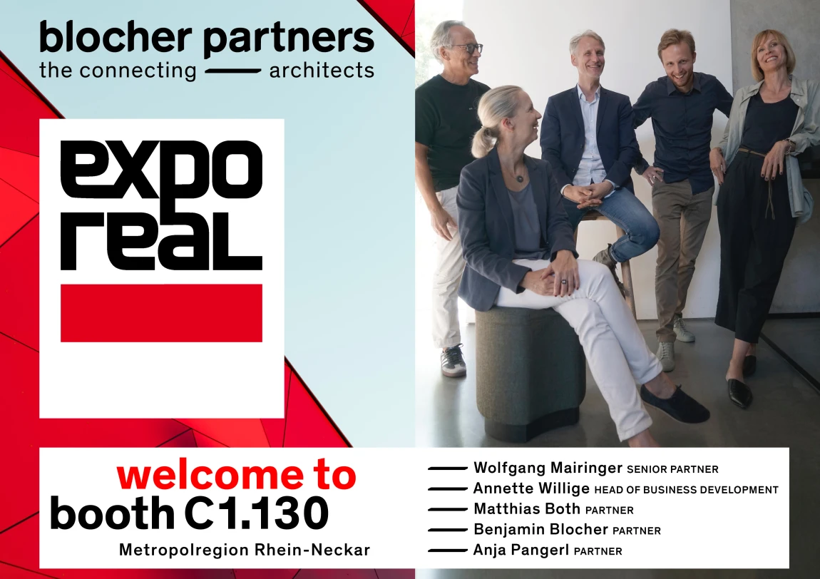 Auch 2023 ist blocher partners auf der Immobilienmesse und Konferenz in München | EXPO REAL vertreten. Für einen Austausch stehen von Mittwoch, 4. Oktober bis Freitag, 6. Oktober Wolfgang Mairinger, Anja Pangerl, Matthias Both und Benjamin Blocher als Vertreter der Geschäftsführung sowie Annette Willige, Leitung Business Development, am Stand der Metroloregion Rhein-Neckar (C1. 130) zur Verfügung. Weitere Informationen unter: 0711-22482-0 oder info@blocherpartners.com
