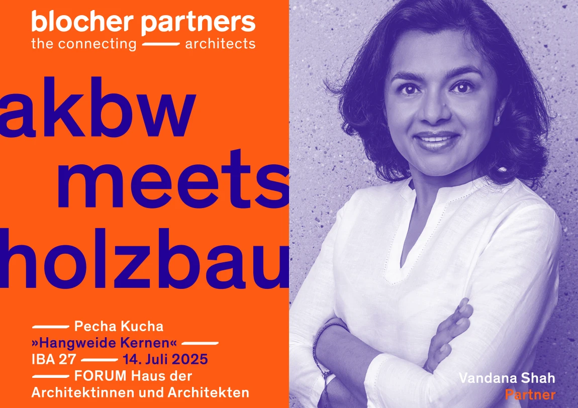 Holzbau steht wie kaum ein anderer Baustoff für Nachhaltigkeit und zukunftsweisende Architektur. Genau darum dreht sich alles am 14. Juli 2025 bei der Veranstaltung „AKBW meets IBA“ im FORUM Haus der Architektinnen und Architekten (HdA) in Stuttgart. Vandana Shah, Partnerin bei blocher partners, präsentiert dort spannende Einblicke aus dem Projekt Hangweide Kernen. Unter dem Motto „Holzbau integriert planen“ diskutieren Expert:innen aus Architektur und Bauwirtschaft über nachhaltige, wirtschaftliche und kreative Lösungen für den Holzbau der Zukunft.