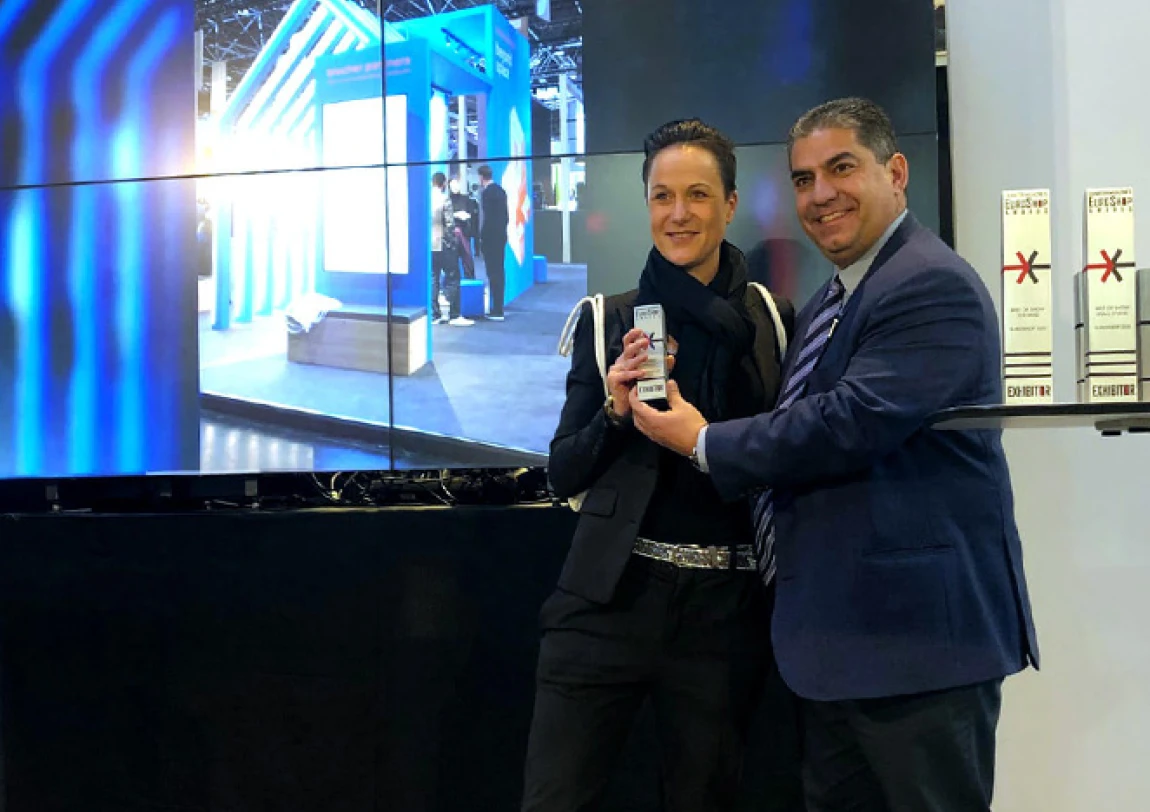 Der Messestand von blocher partners auf der EuroShop 2020 in Düsseldorf wurde im Rahmen der Exhibitor Magazine's EuroShop Awards mit dem 1. Preis in der Kategorie XS ausgezeichnet und setzte sich im Finale gegen neun Mittbewerber durch.
