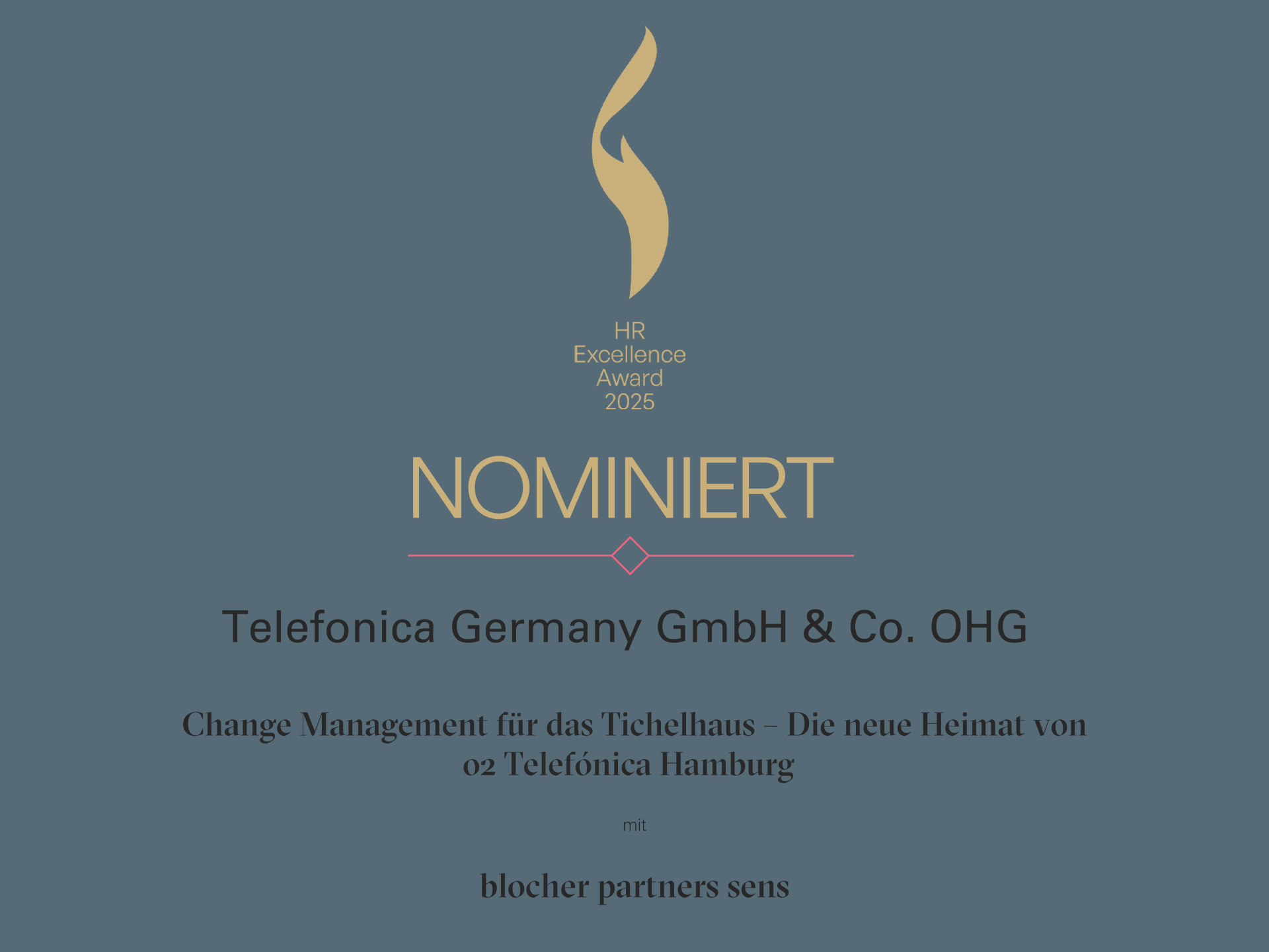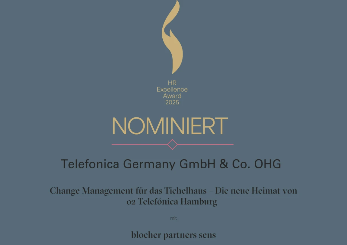 Der Standortwechsel ins Tichelhaus Hamburg war für o2 Telefónica weit mehr als ein Umzug: Er wurde zum Auslöser eines kulturellen Neustarts. blocher partners sens begleitete den Wandel strategisch – nun steht das gemeinsame Projekt auf der Shortlist des HR Excellence Award in der Kategorie Change Management.