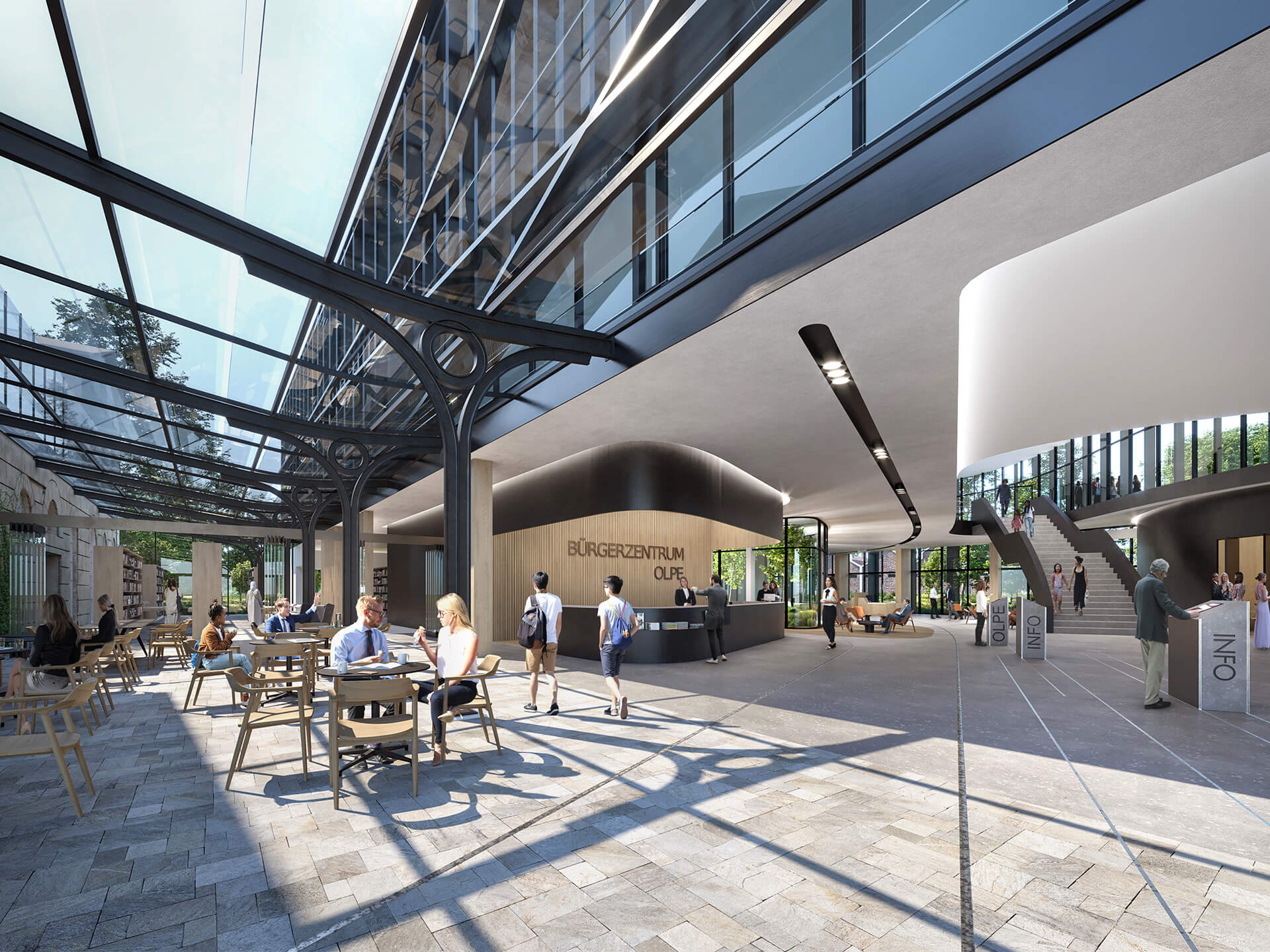 Beim Realisierungswettbewerb „Neubau Bürgerhaus (Rathaus mit Museum)“ im nordrhein-westfälischen Olpe erreichte der Entwurf von blocher partners eine Anerkennung sowie den ersten Preis für den Ideenteil, der gemeinsam mit Gänßle + Hehr Landschaftsarchitekten entwickelt wurde. Der in Holz-Hybridbauweise konzipierte Neubau nimmt die Gegebenheiten der Umgebung auf, schafft einen Hochpunkt entlang des Flusses Bigge und zusammen mit der Fläche aus dem Ideenteil einen neuen Stadtplatz für die Stadtgesellschaft.