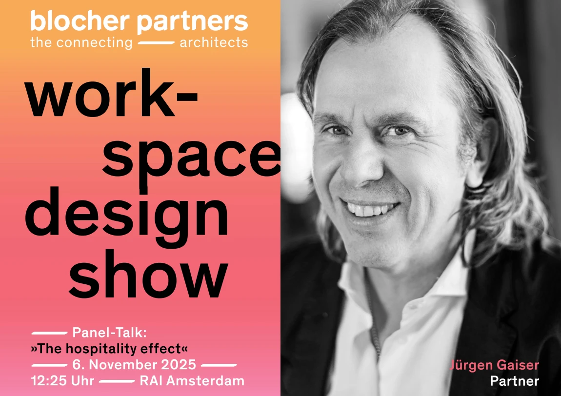 Wie wird Gastlichkeit zum Treiber für bessere Arbeitswelten? Unser Partner Jürgen Gaiser diskutiert auf der Workspace Design Show in Amsterdam, wie Hospitality-Prinzipien Büro, Campus und Mixed-Use neu denken lassen – von Welcome-Experiences über Service-Ökosysteme bis zur Identität von Markenräumen.