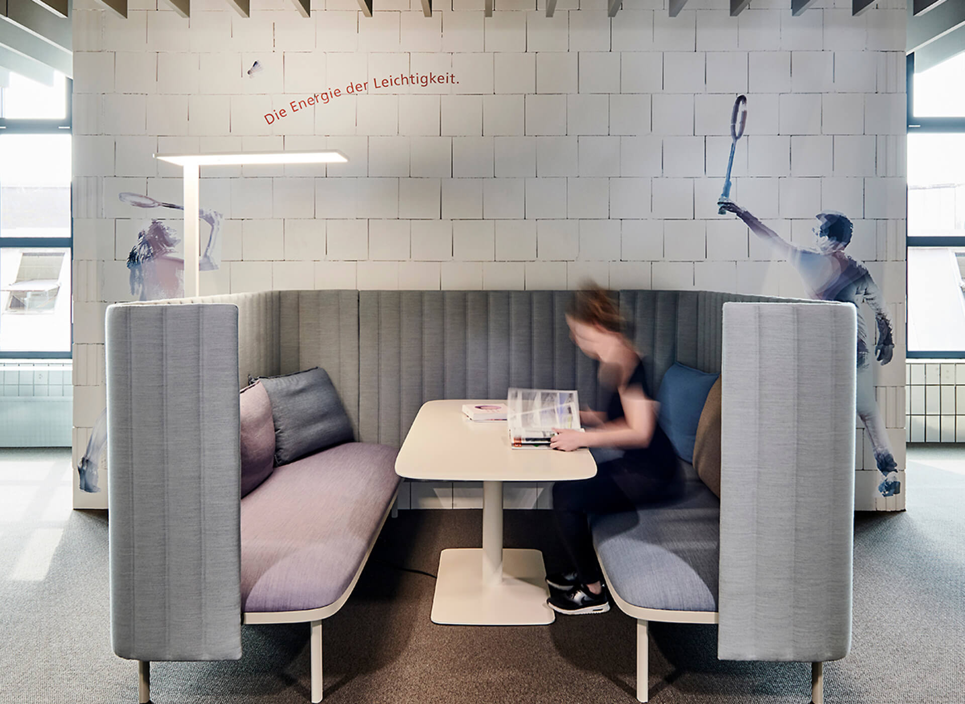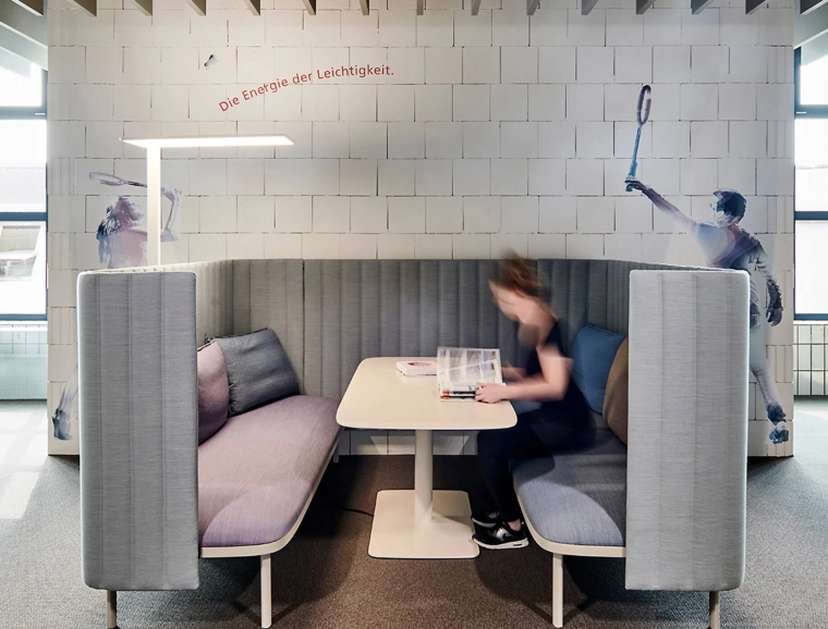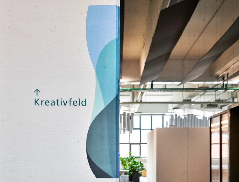 Das Orientierungssystem sowie eine Piktogramm-Familie unserer Kommunikationsspezialisten von typenraum unterstützt die intuitive Raumerfahrung in der früheren Lagerhalle auf dem GETRAG-Areal in Ludwigsburg und webt sich in den von den Innenarchitekten entwickelten Workspace-Prototypen, einem modularen Office-Space, ein. Mitarbeiter arbeiten für etwa sechs Monate in einem Thinktank. Bestehende Werte reflektiert das Orientierungssystem, neue Ideen entstehen. Stetig in Bewegung: Mensch, Raum, Objekte, Konzepte. Diese Spaces setzen Initiale für Veränderung. Es geht um »Stolz, Wohlbefinden, Motivation, Mut, Flexibilität« – die fünf Werte des Projekthauses. Immer im Mittelpunkt: der Mensch.