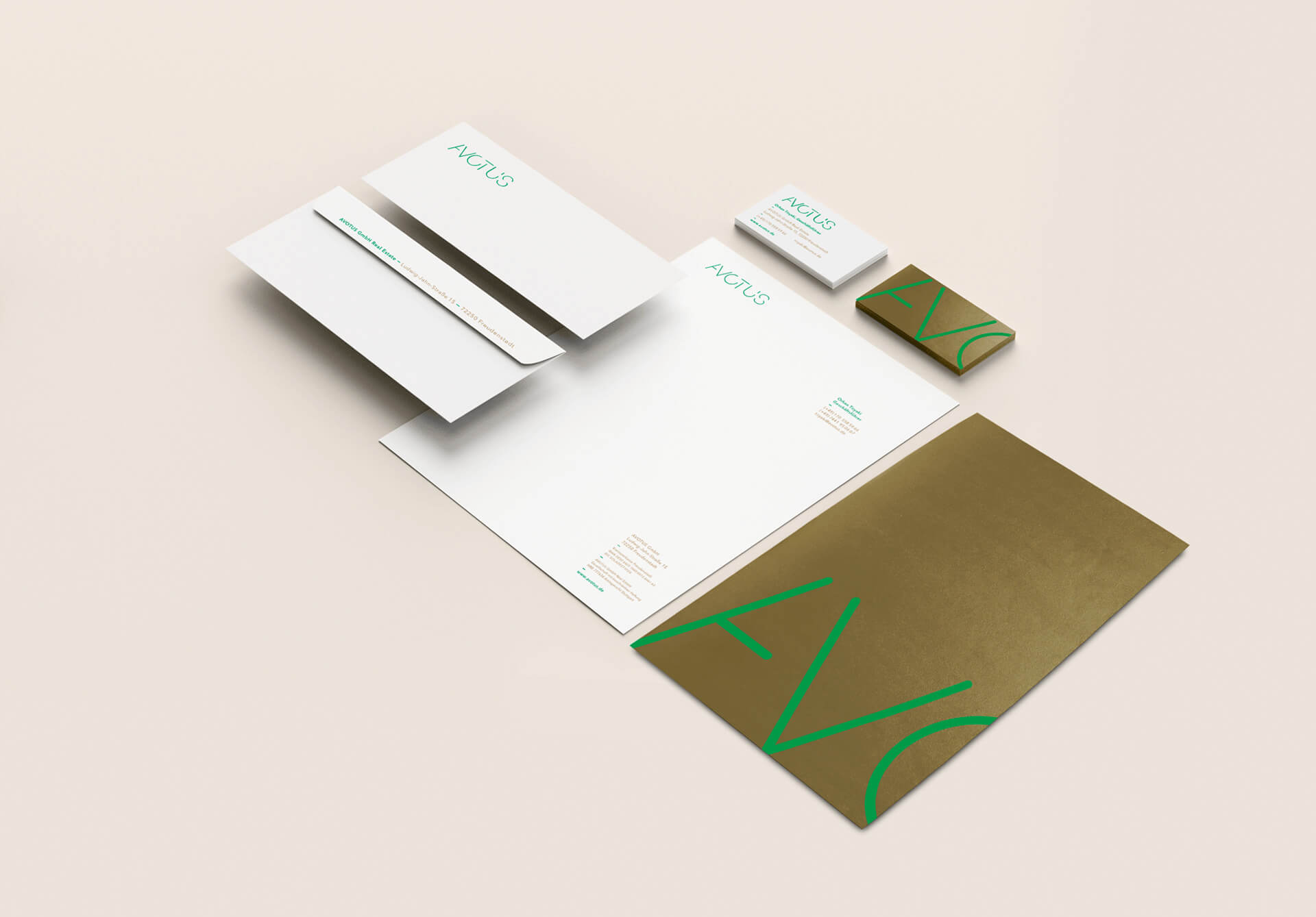 Offen, dynamisch und lebendig gestaltet sind Corporate Design, Logo und Key Visual, die für den Immobilienentwickler entworfen wurden. Die Grundlage bilden Attribute, mit denen Avotus in der Öffentlichkeit verbunden wird. In organische und statische Formen mit kleinen Öffnungen übersetzt, werden Nahbarkeit und Sensibilität vermittelt – Werte, die das leuchtend grüne Farbkonzept unterstreicht.