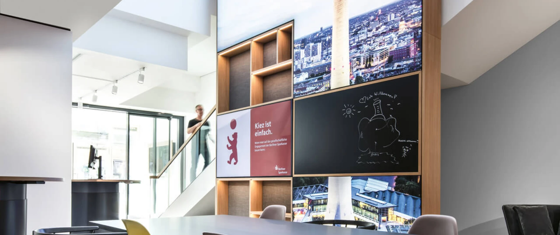 Und deren Leistungen überzeugten: Die Gestalter konnten den Ideen- und Designwettbewerb inklusive Umbau der Filialen für sich gewinnen. Die neuen Filialen der Berliner Sparkasse stehen für menschliche Nähe und Vertrauen, für Rationalität, Service und Zusammenhalt. Die Räume sind nun transparenter und heller als ihre Vorgänger, der SB-Bereich erhielt die gleiche Aufenthaltsqualität wie der Bereich der Kundenberatung. Digitale Tools unterstützen die Kunden bei Service- und Bedienungsfragen.