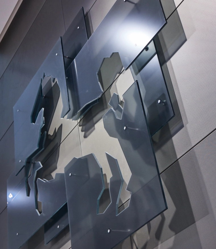 Die Gestalter entwarfen eine moderne Abstraktion des niedersächsischen Wappens, dessen Geschichte bis in das 16. Jahrhundert zurückreicht. Sie schufen ein identitätsstiftendes Symbol, das sich aus überlagernden, transluzenten Glaselementen zusammensetzt, die außen die Kontur des Bundeslandes nachzeichnen, und im Inneren ein stilisiertes Ross entstehen lassen. Das Pferd symbolisiert Transparenz in der Politik. Es begrüßt Abgeordnete wie Besucher aus allen Perspektiven und von ist weithin sichtbar.
