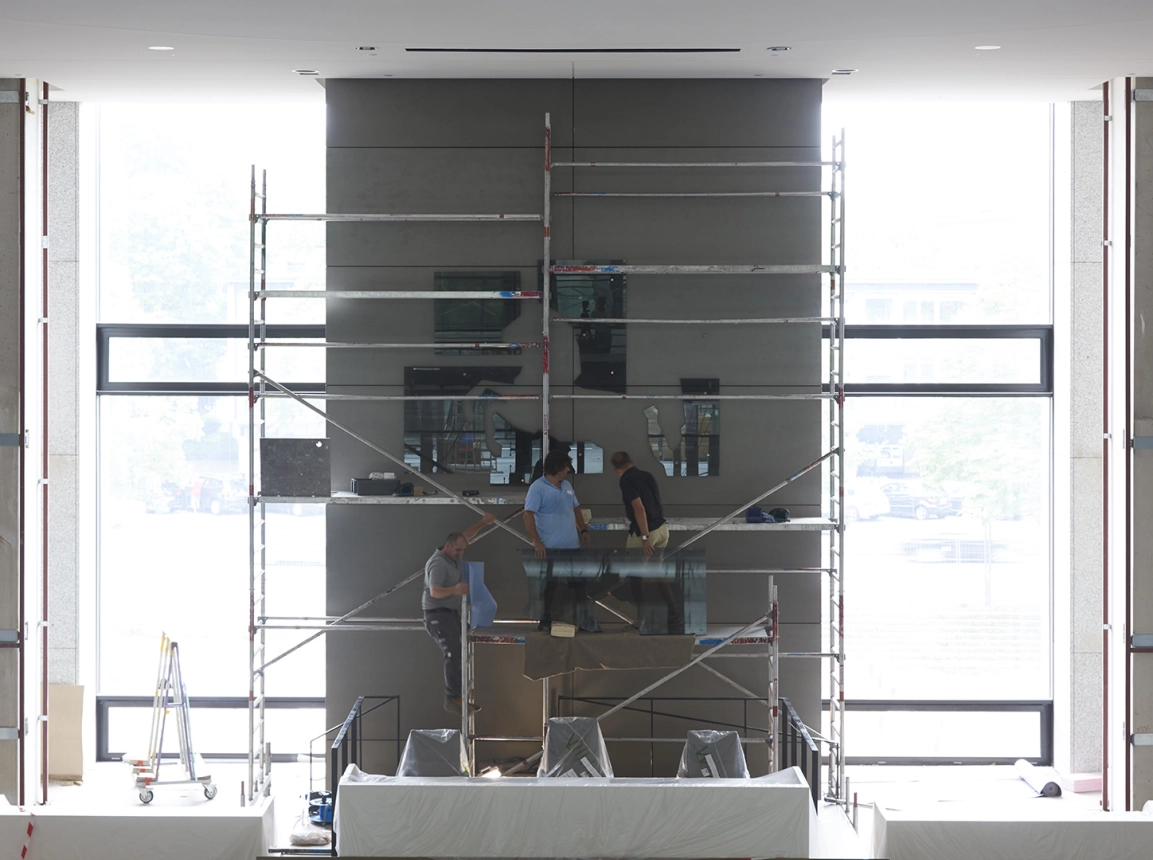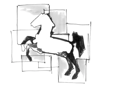 Die Architekten von blocher partners verwandelten das von Dieter Oesterlen in der Nachkriegszeit entworfene Baudenkmal in ein modernes Parlamentsgebäude. Dazu zählte auch die Erneuerung des Landeswappens an der Stirnseite des Plenarsaals. Das alte, gemeißelte Ross des Bildhauers Kurt Schwerdtfeger wurde durch das von typenraum entworfene Exemplar aus Glaselementen ersetzt, die sich so überlagern, dass ein stilisiertes Ross entsteht, das Abgeordnete wie Besucher aus allen Perspektiven begrüßt. Das Symbol für transparente Politik zeigt außen die Kontur Niedersachsens.