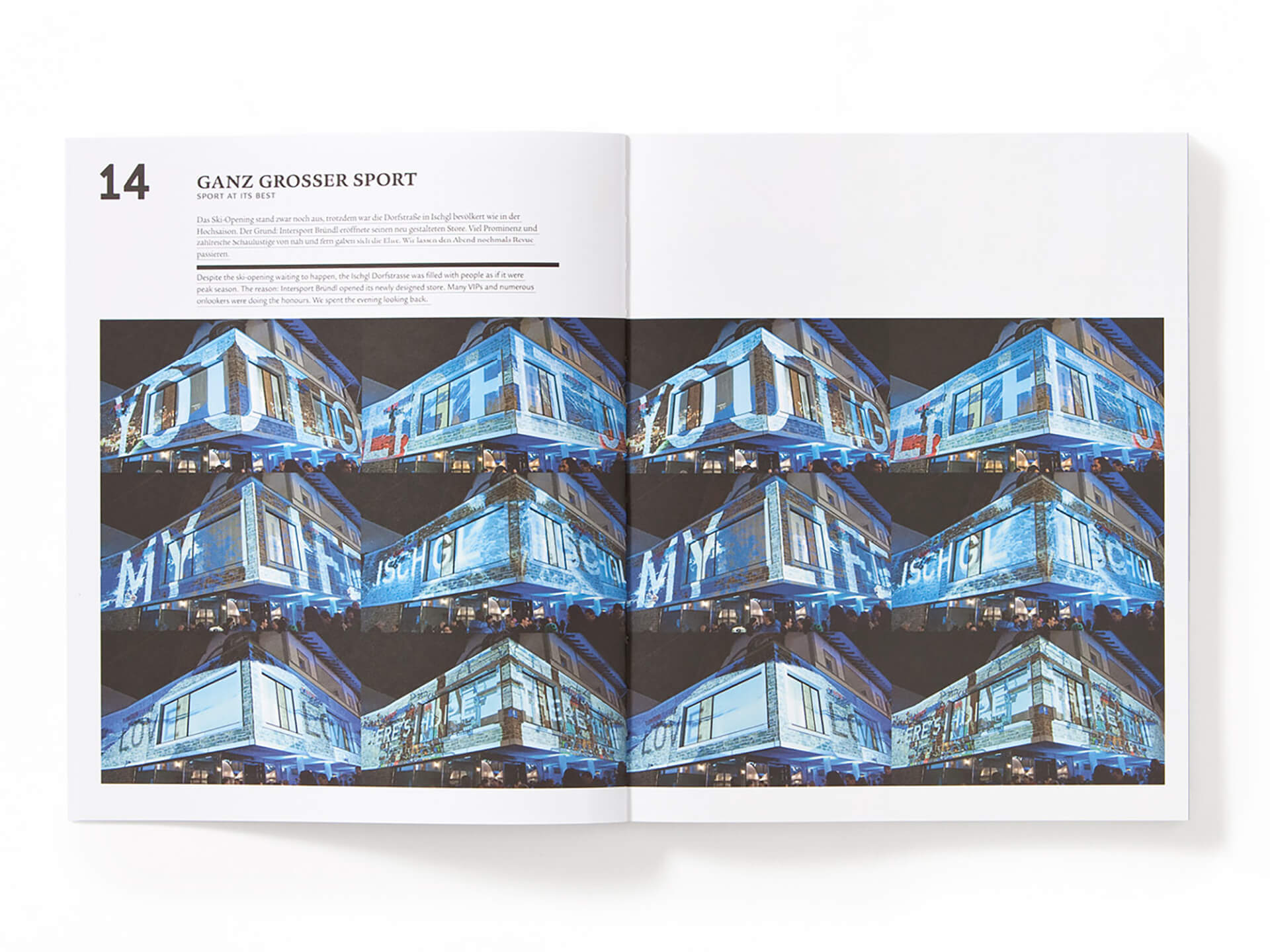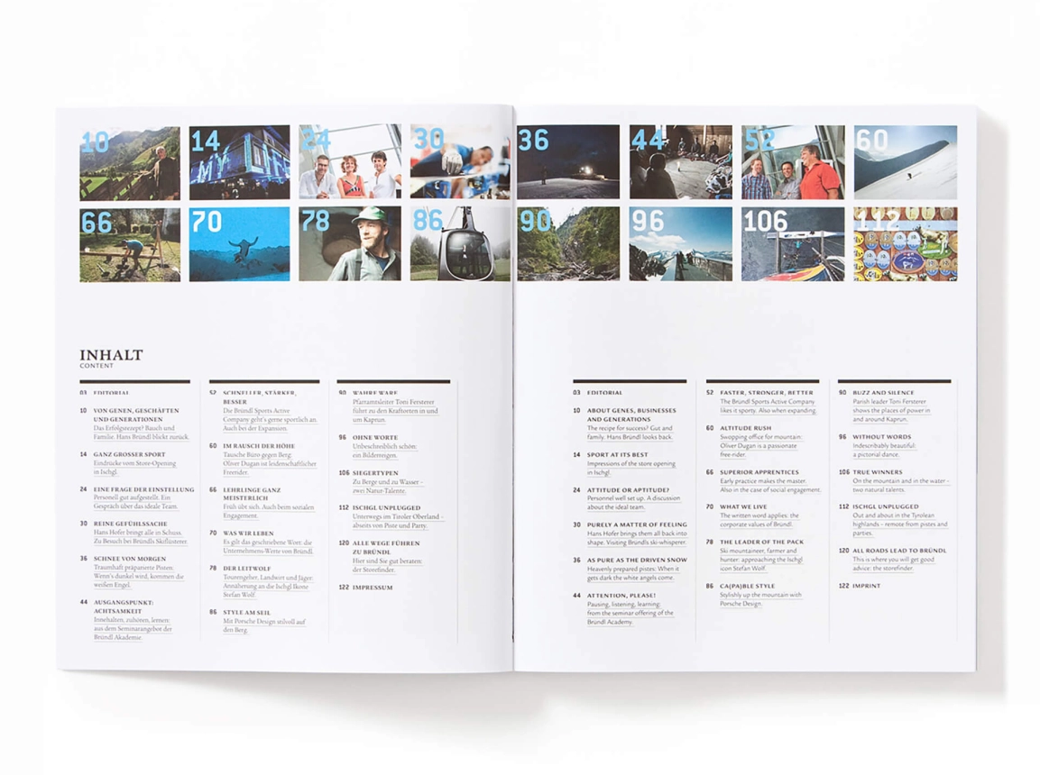 Darin wird das Sport- und Lifestylehaus und die mit ihm verbundenen Menschen und Schauplätze mit den Mitteln eines modernen Kommunikationsdienstleisters emotional in Szene gesetzt. Das Lifestyle-Magazin richtet sich unter anderem an Bründl-Kunden, Meinungsbildner, Multiplikatoren, VIP's und Geschäftspartner. Bereits seit 2007 war blocher partners mehrfach für Bründl tätig, unter anderem für den Bründl Kaprun Flagship Store.