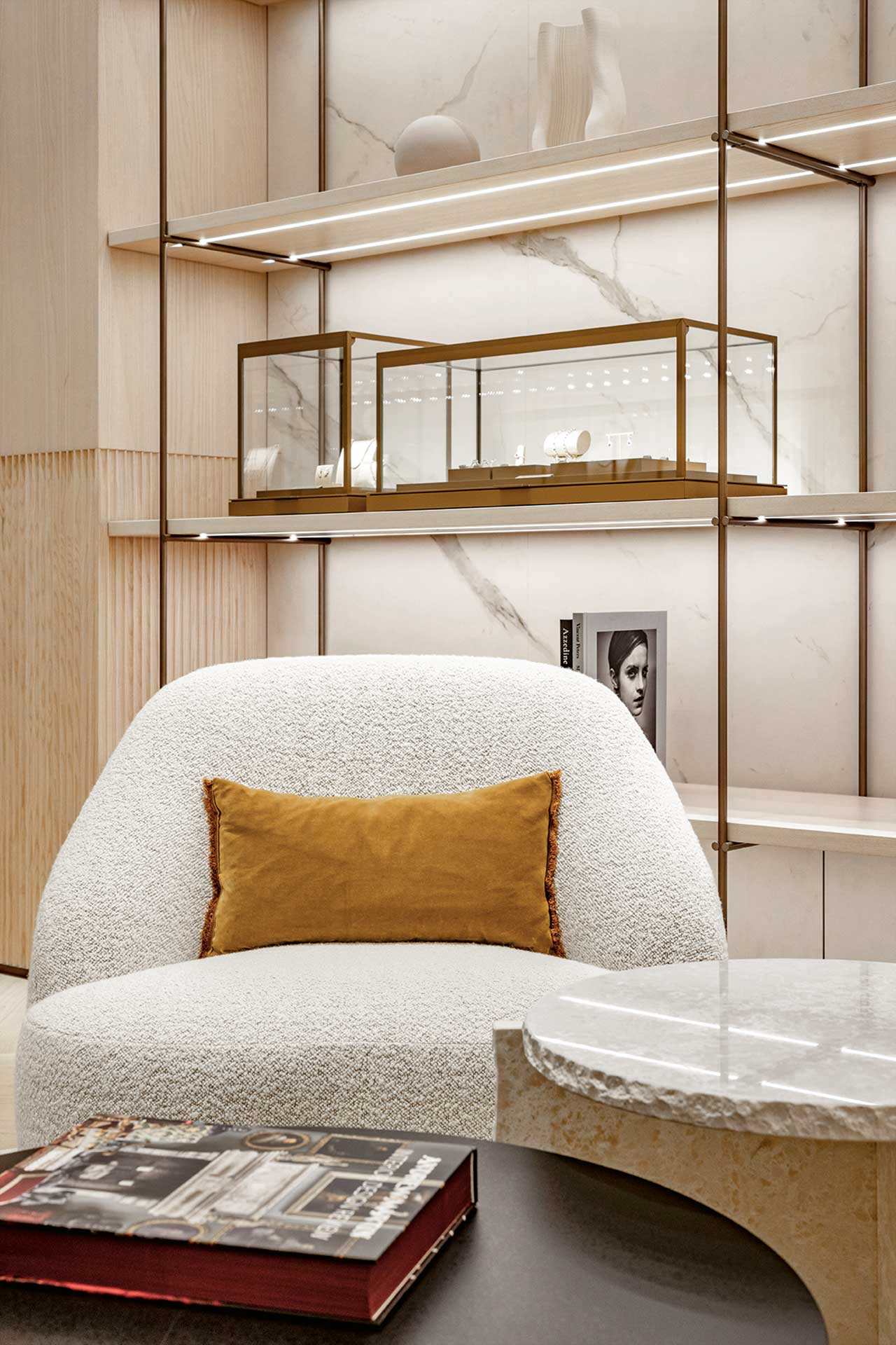 Das Visual Merchandising rundet das Store-Erlebnis ab und verleiht dem Raum eine zeitgemäße Dynamik. Der Store vereint Historie und Moderne und setzt mit seiner exklusiven Gestaltung ein klares Statement für hochwertige Architektur und Interior Design.