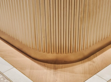 Aus champagnerfarbenem Metall gefertigt und in Form der „Bucherer-Acht“ stilisiert, trägt die Herzog Tagesbar mit Loungebereich ebenfalls zur hohen Aufenthaltsqualität bei. Die Bar steht allen Besuchern des Oberpollingers offen und wird vom Münchner Gastronomen Maximilian Gradl betrieben.