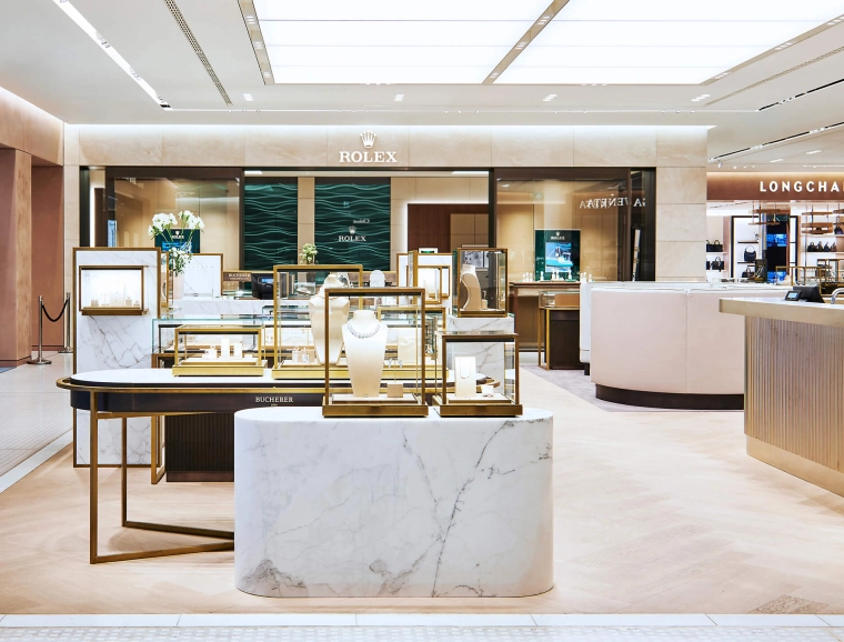 Planung und Gestaltung eines Uhren- und Schmuckshops innerhalb eines Department-Stores — Neuhauser Str. 18, 80331 München — 380 m² — 07.2018 — Bucherer Deutschland GmbH