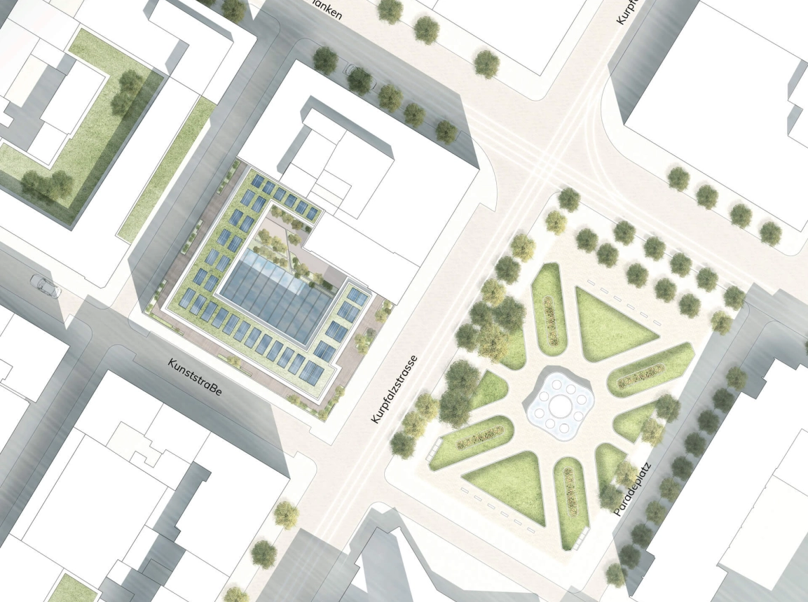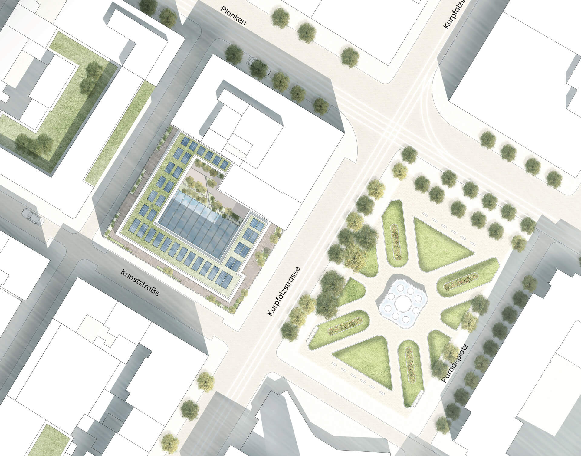 Entwurf für ein Büro- und Geschäftshaus — Paradeplatz, Mannheim — 2021 — Sparkasse Rhein Neckar Nord