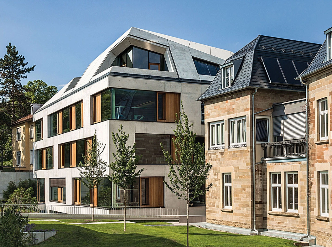 Die städtebaulich heterogene Situation im Herdweg nutzten die Architekten, um einen Solitär zu setzen. Schlicht, jedoch markant.