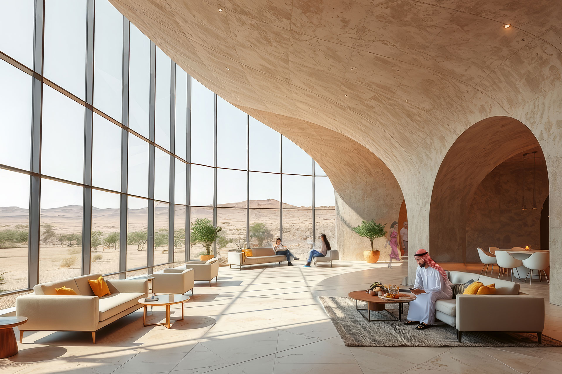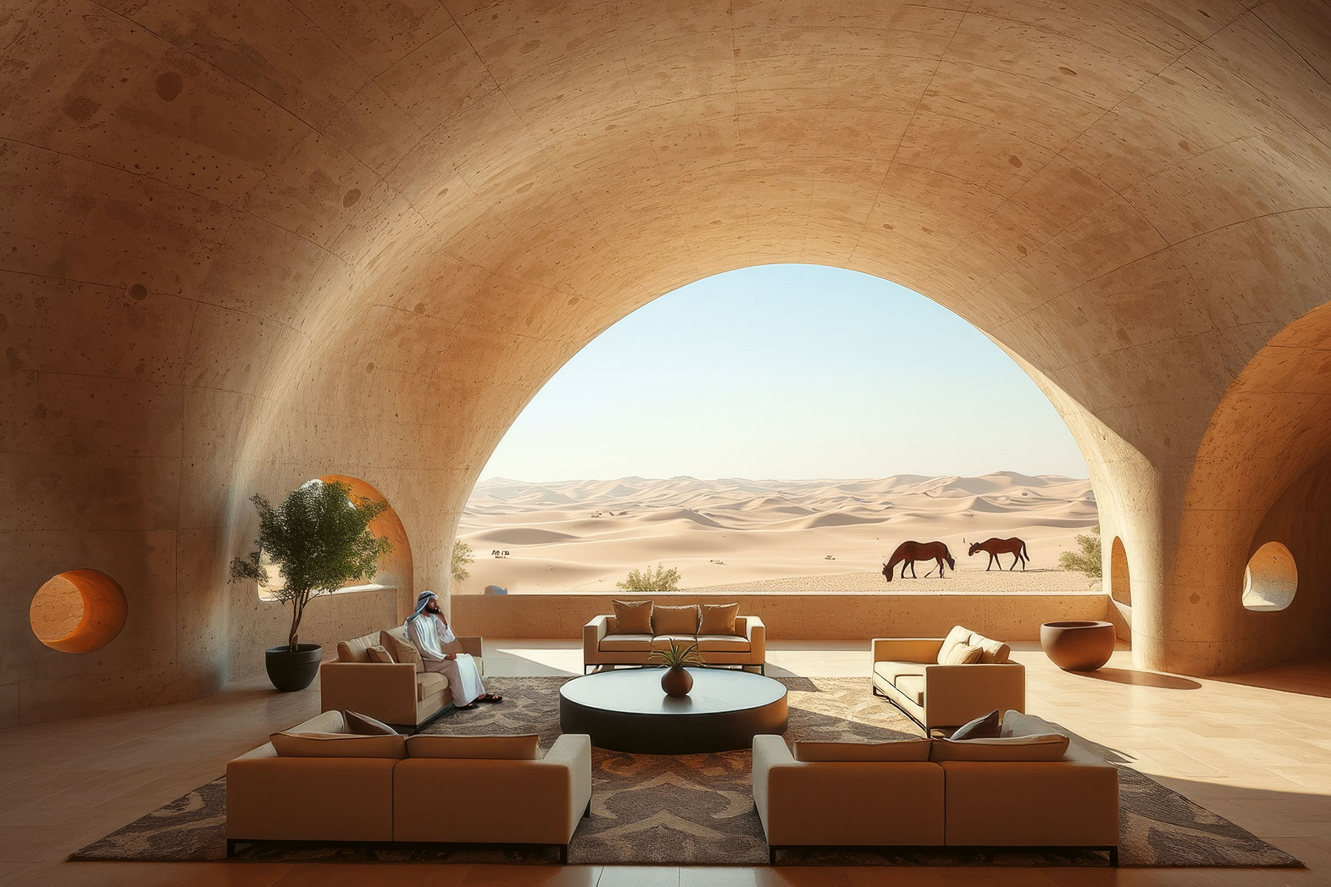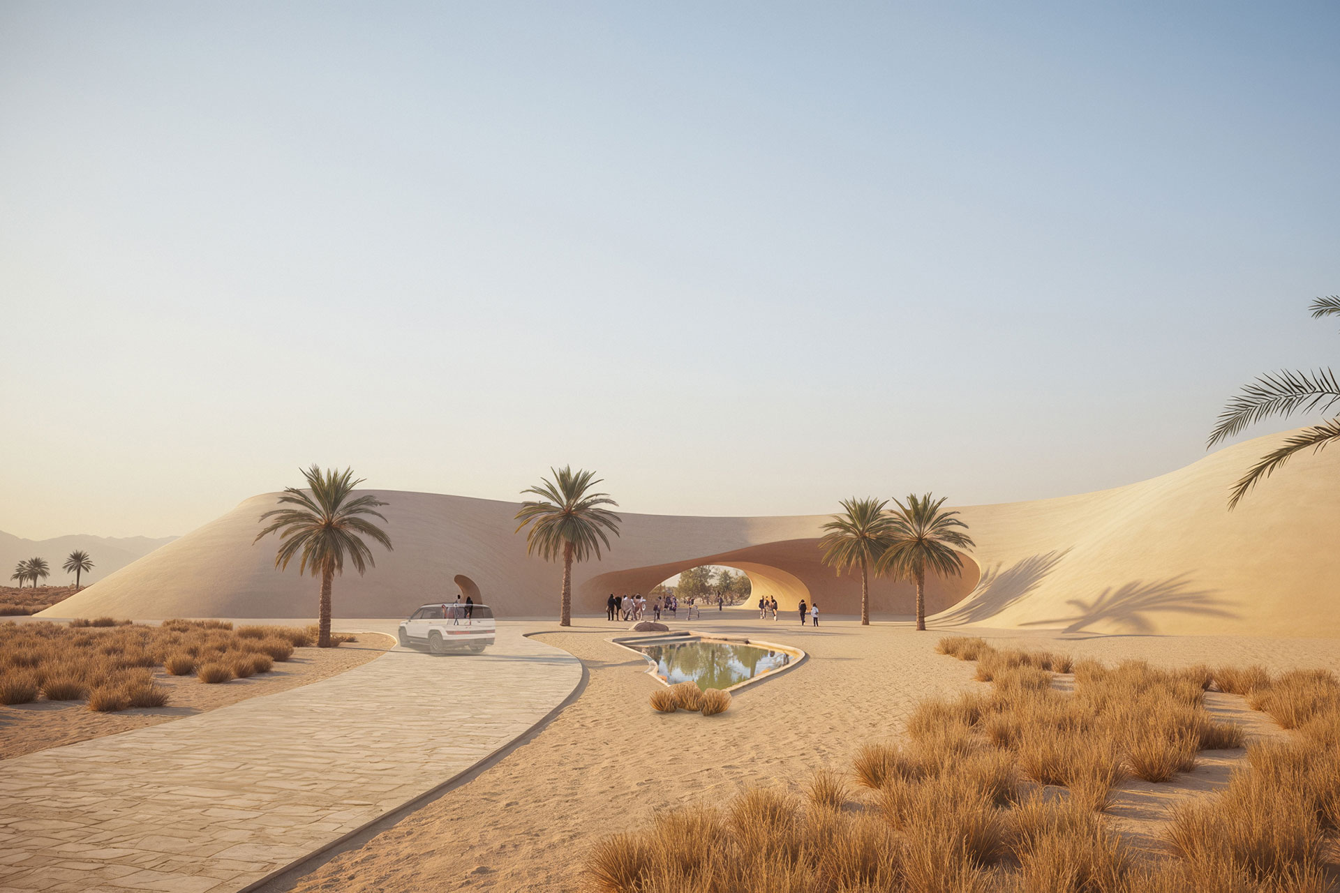 Ein Reitsportzentrum wird zur kulturellen Landschaft. Das geplante Lifestyle-Resort in der katarischen Wüste entwickelt seine Architektur aus Bewegung und Raumgefühl. Wege orientieren sich an natürlichen Spuren, Gebäude erscheinen wie geformt vom Wind. Zwei Konzepte prägen das Bild. Während »Desert Archipelago« organisch fließt, setzt »Inner Circle« auf klare Geometrie. Beide erzählen von Herkunft, Disziplin und Freiheit.