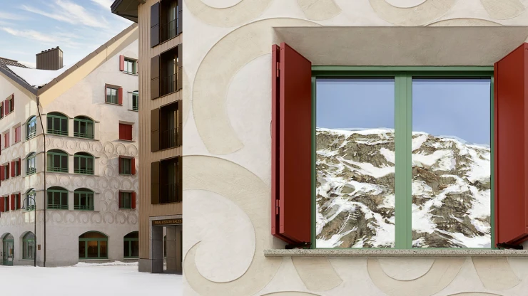 Das Interior Design konzentriert sich auf das Wesentliche: Natürliche Materialien gehen eine ästhetische Symbiose ein mit einer reduzierten Farbpalette, die einzelne Akzente zu setzen weiß. Der graubeige Naturstein kleidet sowohl innen als auch außen die Böden, Eichenholz prägt den Innenausbau. Decken und Wände erscheinen in Sichtbeton, teils weiß verputzt scheinen sie mit dem Kalksteinboden zu korrespondieren. Anstelle einer gleichmäßigen Grundbeleuchtung setzten die Lichtplaner auf eine akzentuierte Beleuchtung. So auch an den Fenstern: Leibungslichter an den Panoramafenstern nehmen Spiegelungen zurück und ermöglichen auch bei Nacht klare Sicht auf den See. Der hohe Detailgrad der Planung wird abgerundet durch ein sorgfältig kuratiertes Möblierungskonzept, das in enger Zusammenarbeit mit den Stuttgarter Objekteinrichtern Kampe54 entstanden ist.
