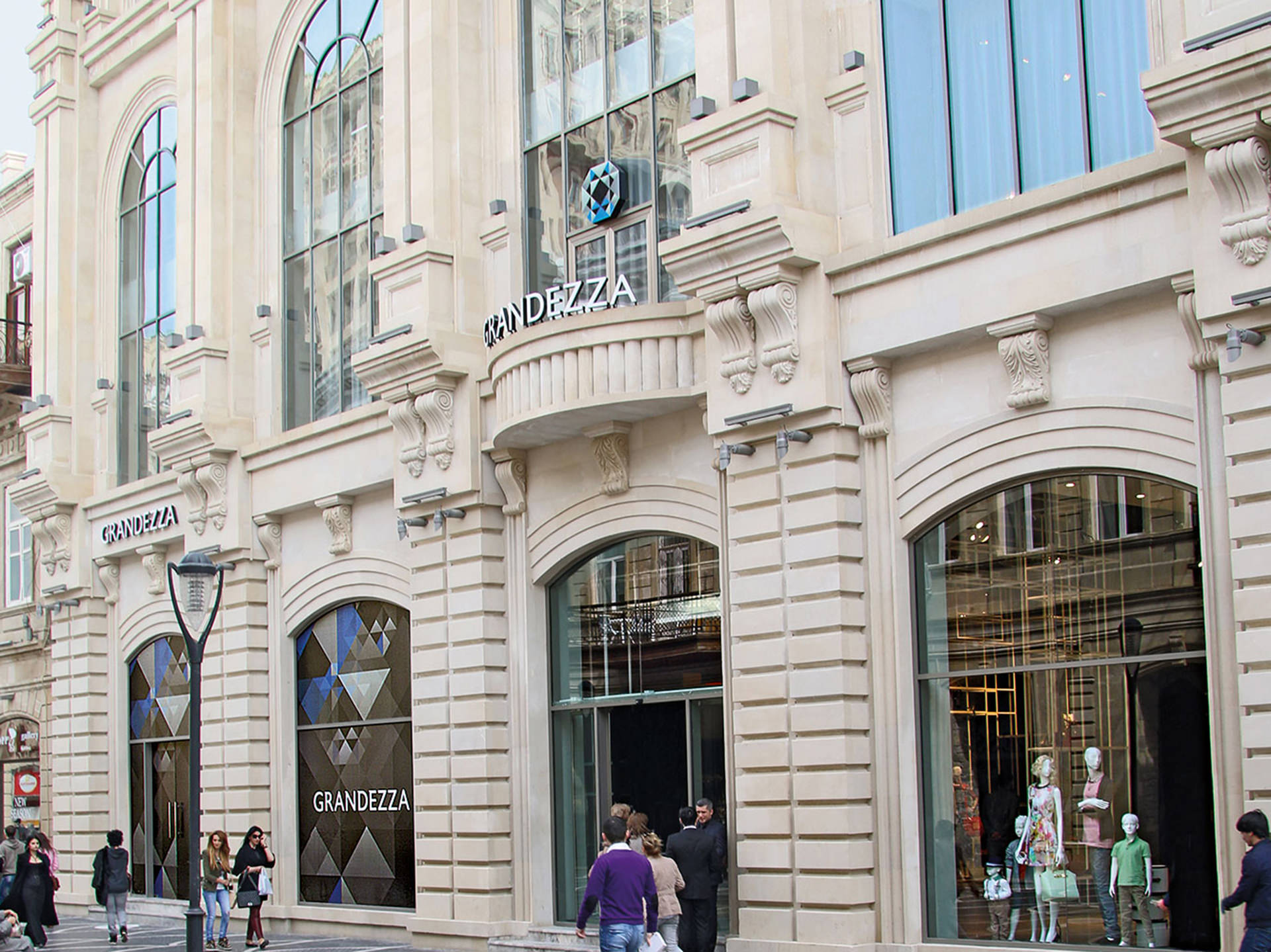 Grandezza ist das neue Department Store-Konzept der Modest Group in Baku, Aserbaidschan. Das Kommunikationsbüro typenraum begleitete das Projekt von Anfang an. Nicht nur Visual Merchandising und Dekoration stammen von den Stuttgartern, sondern auch Naming und Corporate Design: „Grandezza" steht für Luxus und die große weite Welt. Eindrucksvoll unterstützt das Logo, ein abstrahierter Diamant in Blau- und Grauschattierungen. Der Edelstein als Symbol für die Hochwertigkeit der Marke und den Facettenreichtum der aufstrebenden Metropole Baku.